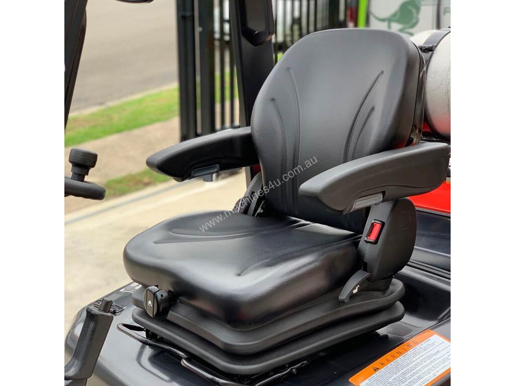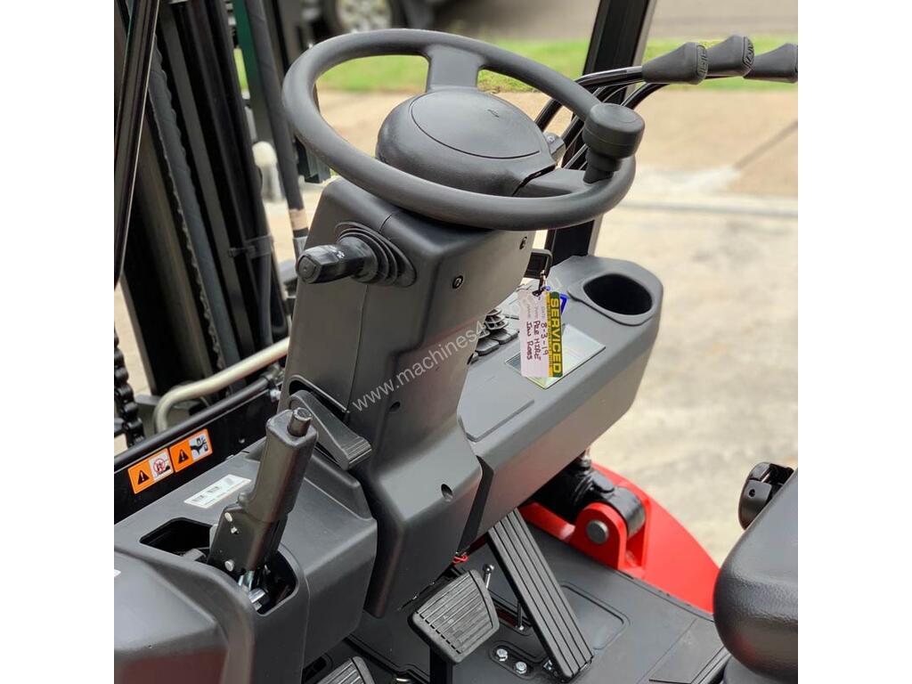 This machine comes standard with a Japanese Nissan K25 engine with the added option to fit a fork positioner attachment if needed. That means no more getting off the forklift to physically move heavy fork tines aligned with different sized pallets.