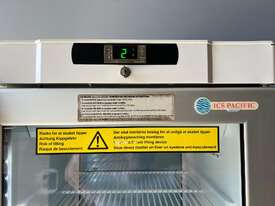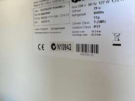 Clean, working medical refrigerator ideal for GP/clinic/lab use. Powers on, fan runs, and the controller shows +2 °C in our photos. Designed for +2 to +8 °C vaccine/medical storage. Features Hi/Lo temp alarms, min/max logging, external alarm port, and 7 wire shelves. Glass door for easy visibility.