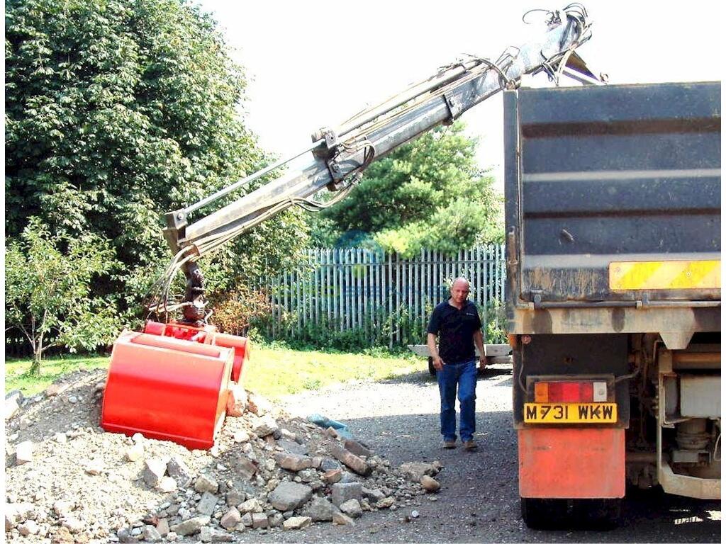 LOADING CLAMSHELL BUCKET WITH HORIZONTAL CYLINDER