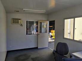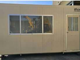 IFCO site shed 3x6m. In very good clean condition. Has internal fuse box and power points. A/C and data cable also installed