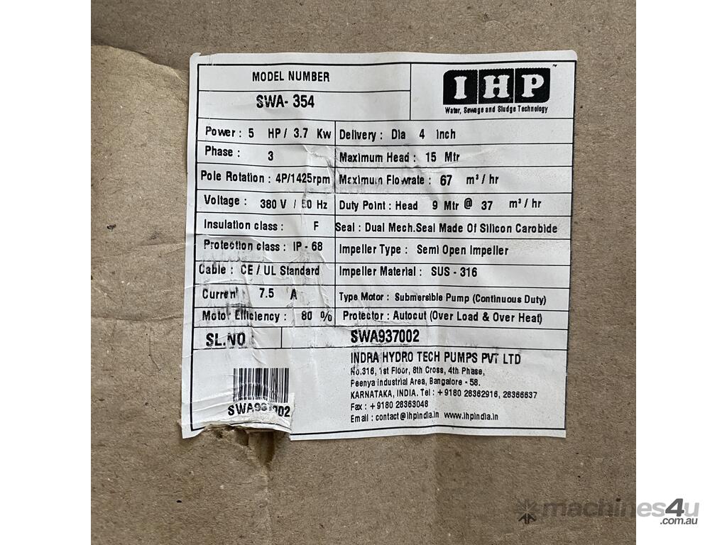 IHP Stainless steel Centrifugal Sewage Submersible Pump Cutting Impeller SWA-354 3.7kW 67m3/hr SS