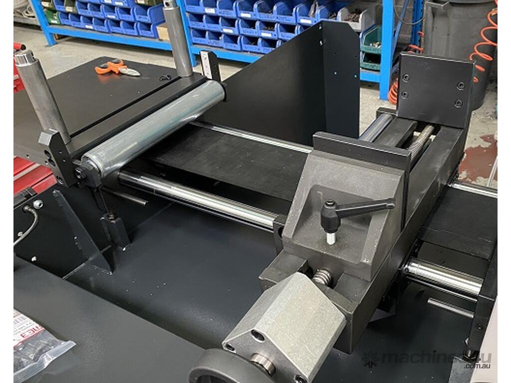 The feed carriage has a maximum stroke of 515mm. The feeder movements is on chromed bars with high positioning accuracy due to the incremental feeding on recirculating ball screw by self-braking electric motor with inverter.