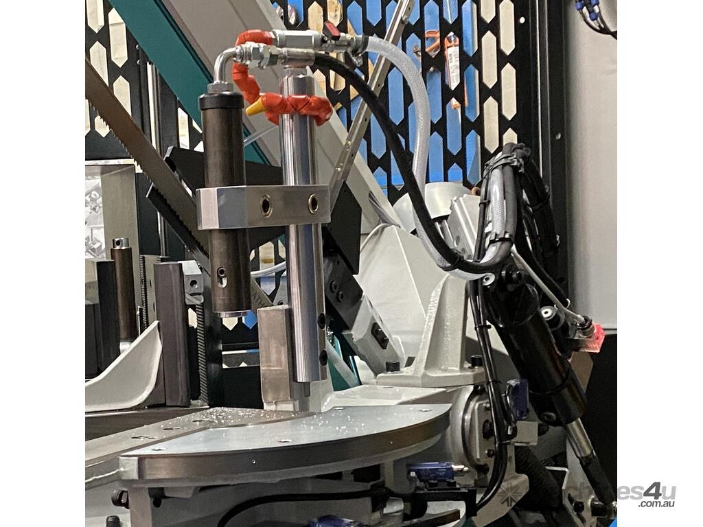 CUBO 350 NC (Flat and Box) are compatible with the automatic sawframe rotation device. The system has mechanical stops with 2 positions and allows to optimize user workflow with mitre cutting on a same bare in automatic cycle.