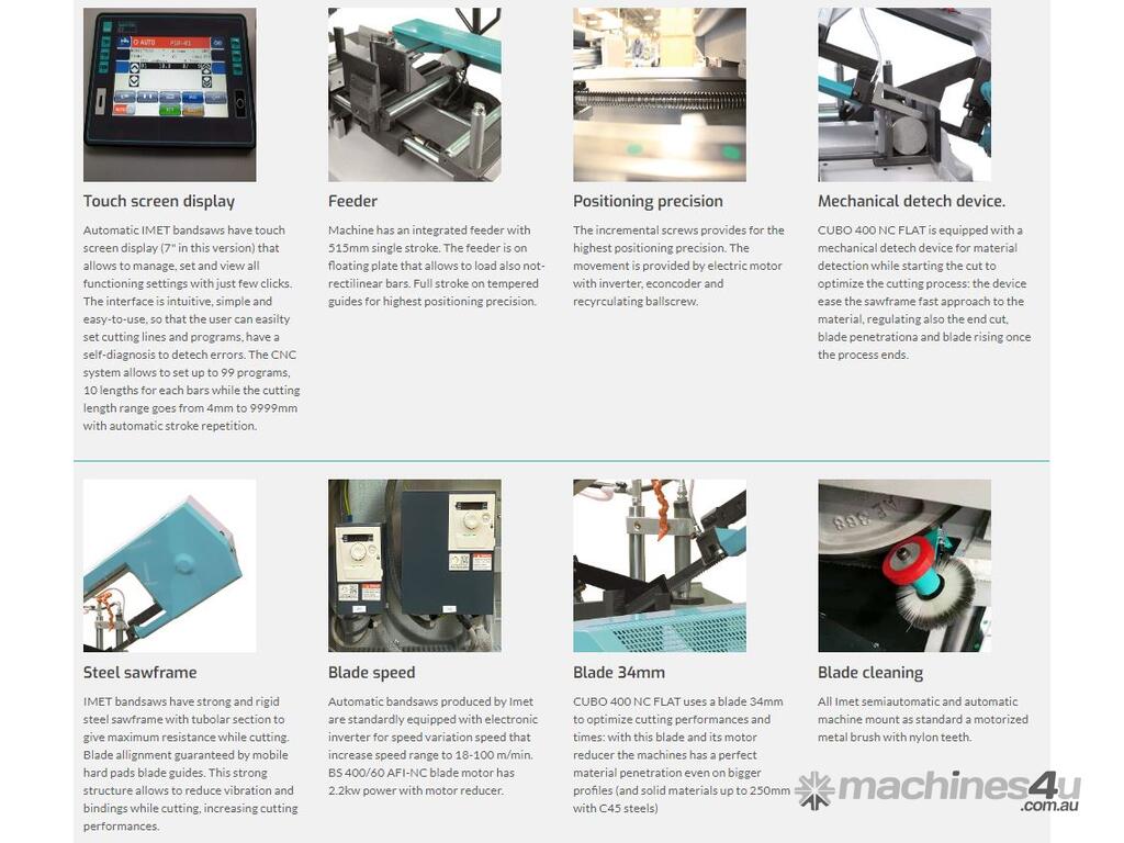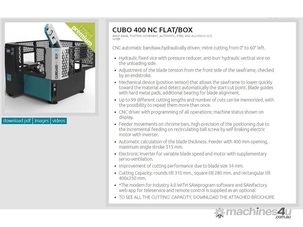 CUBO 400 NC FLAT is an automatic bandsaws with CNC suitable to be a professional working tool for batch production of tubes, bars, profiles and solids. The machine bow rotation is manual while the automatic feeder is integrated. Thanks to INDUSTRY 4.0 READY optional, the user can control its machine remotely (or with the 7" integrated touch screen display)