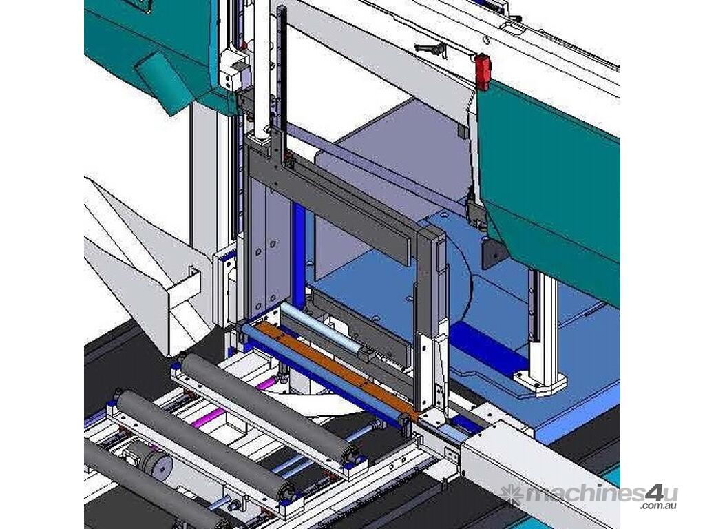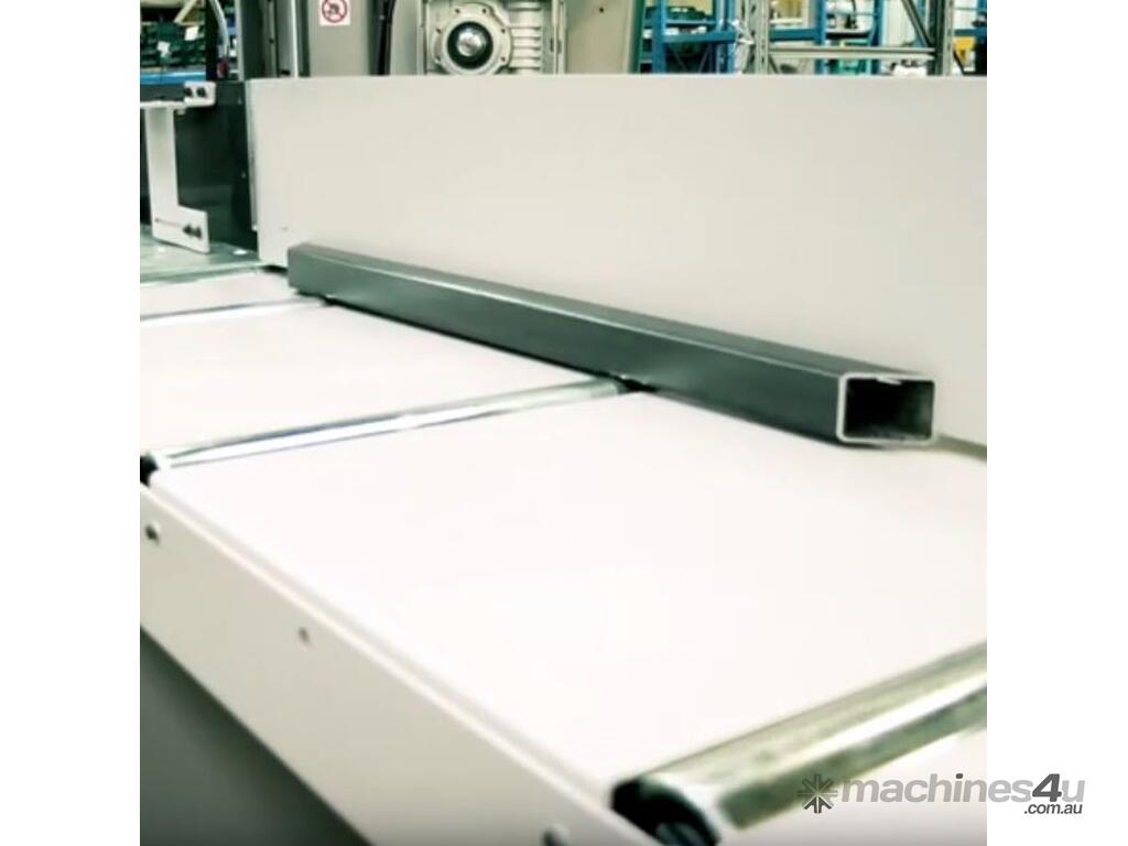 The machine is equipped with a 2000mm feeder (it's available a 3000mm feeder) with integrated roller table. The movement (which is managed by the touch screen interface) is provided by a brushless BMH 2.5 N-m motor with rack and pinion. Minimal scrap-end is 250 mm while the minimum cutting length is 10mm. It's also available on request the longer feeder (F3000 or F6000).