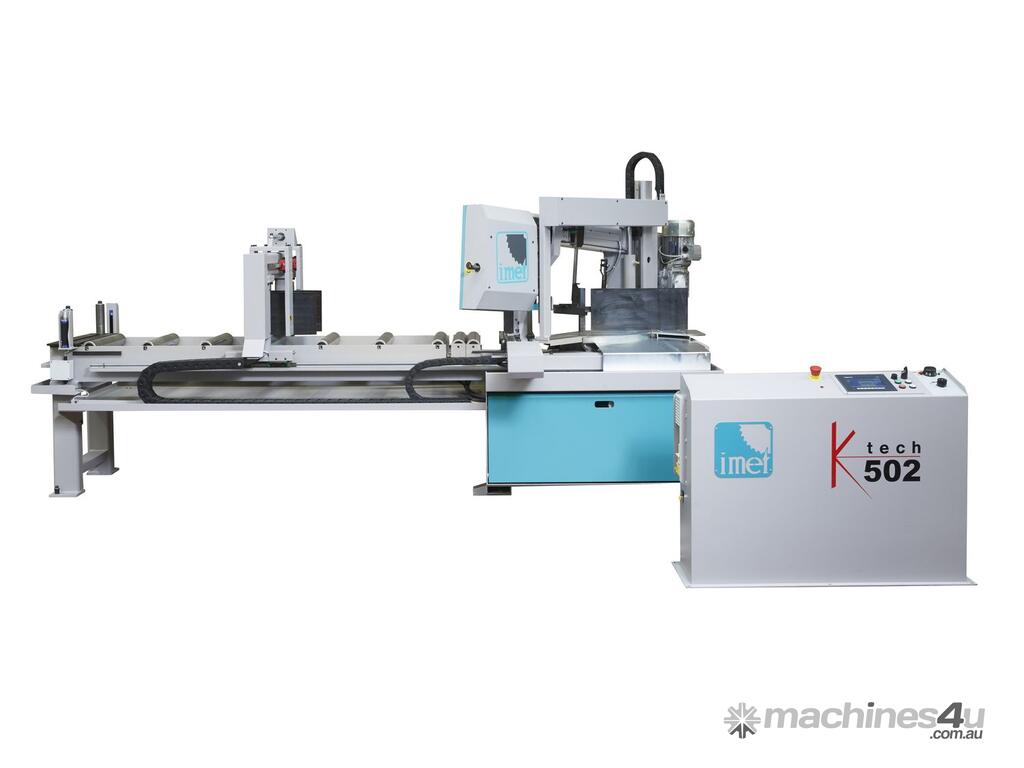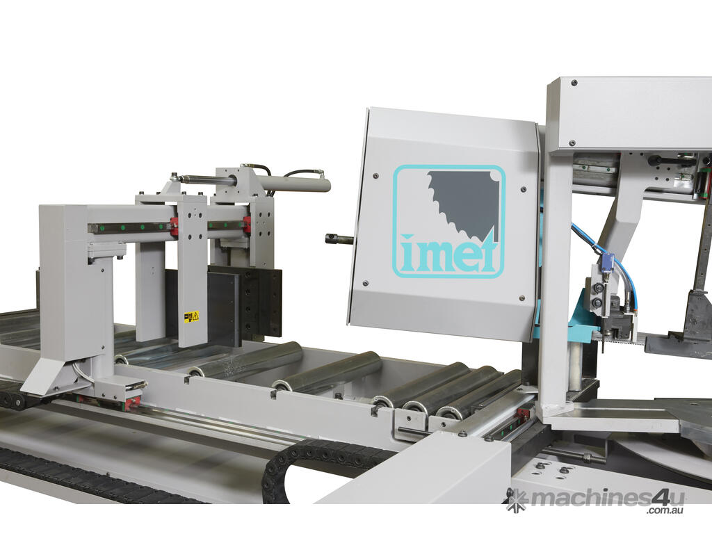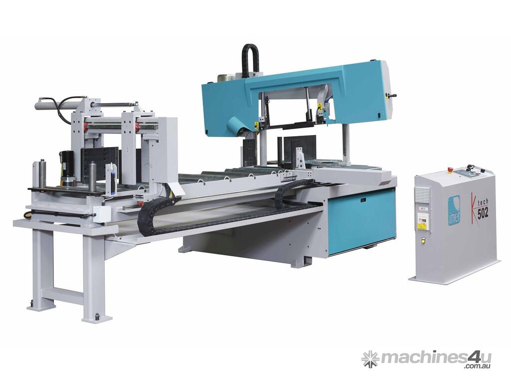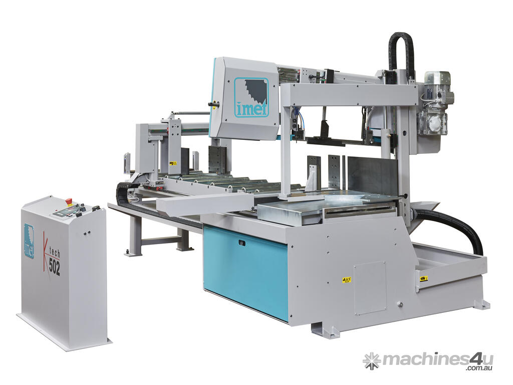 IMET KTECH 502 is an automatic double column bandsaw that includes the most advanced technology available to cut bars, tubes, solids and profiles up to 60° both left and right. An automatic sawing machine with CNC managed feeder and sawframe, KTECH has 10" touch screen interface to manage the cutting process and is the perfect working tool for professionals. The IMET range is manufactured in Italy.