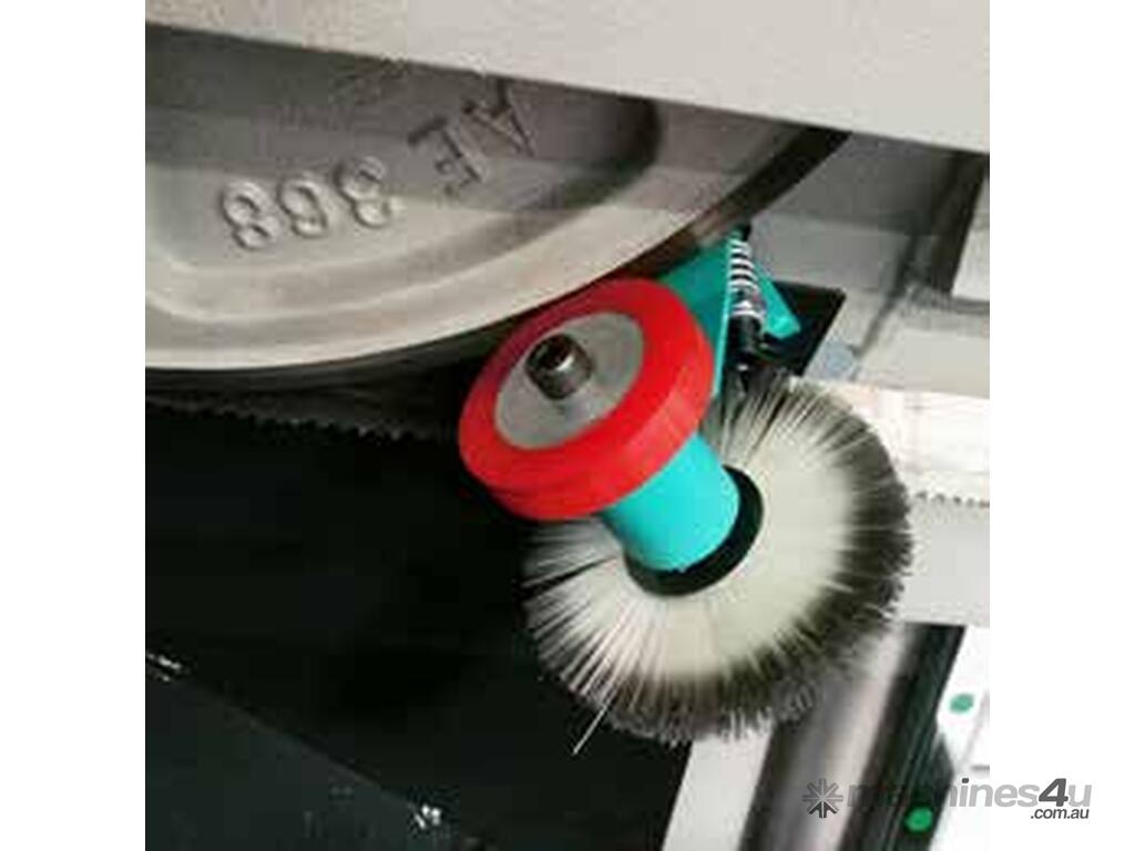 Motorized nylon cleaning brush for blade, driven by motor pulley to always keep