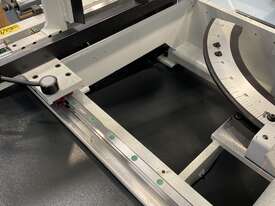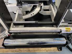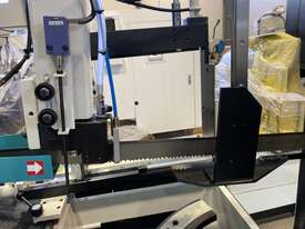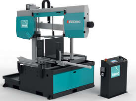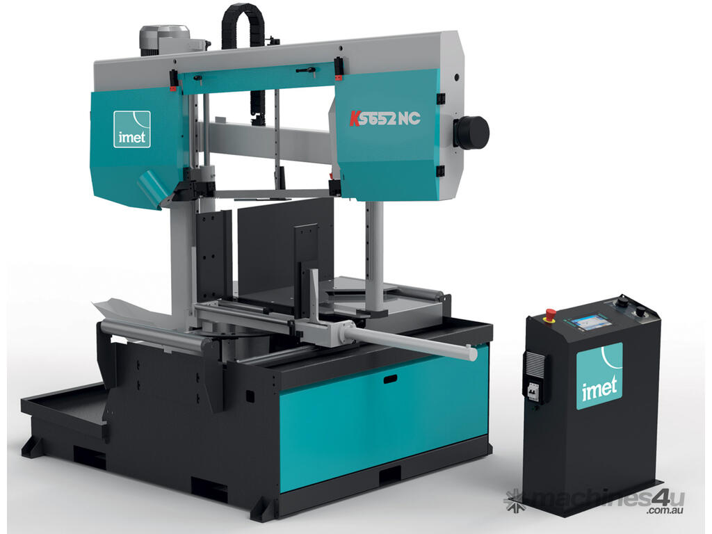 The IMET KS 652 NC is a semiautomatic double bandsaw with NC control on the saw frame rotation and 7" touch screen interface to set the cutting angle. The machine is the perfect working tool for frame producers, steel works factories and