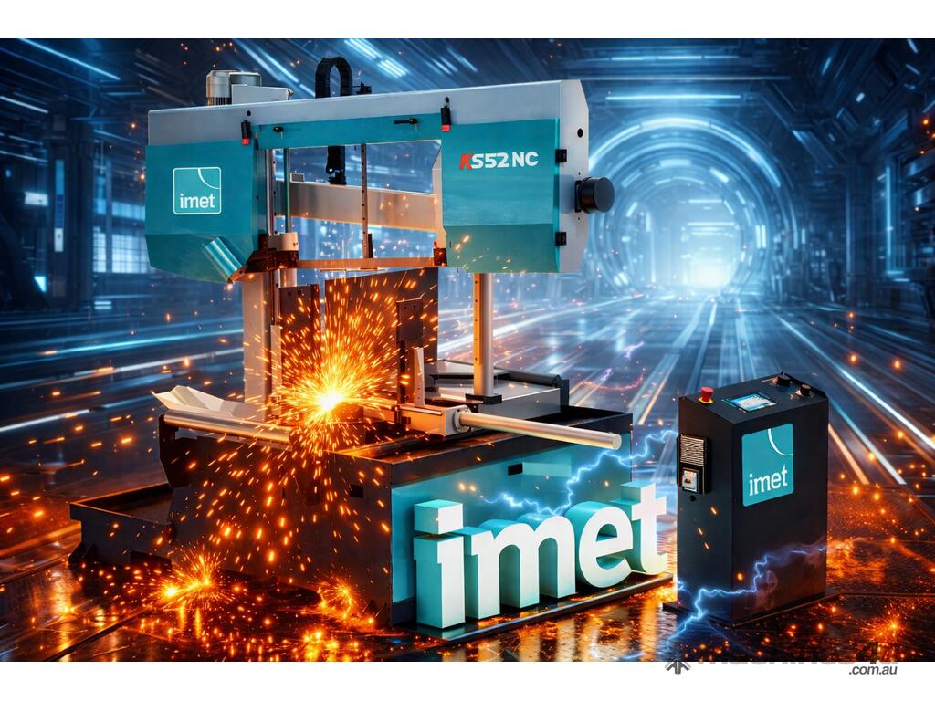 The IMET KS 652 NC is a semiautomatic double bandsaw with NC control on the saw frame rotation and 7" touch screen interface to set the cutting angle. The machine is the perfect working tool for frame producers, steel works factories and