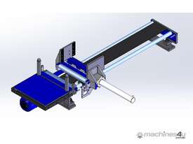 - Once loaded, the material movement is provided by the integrated motorised feeder equipped with self-braking electric motor, incremental screw (that also optimises to have perfect positioning and accuracy), inverter and encoder. The feeder slides on chromed bars with a floating plate to ease the loading of material that is not perfectly straight