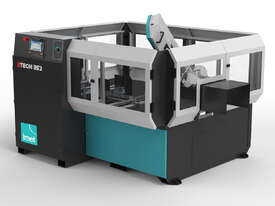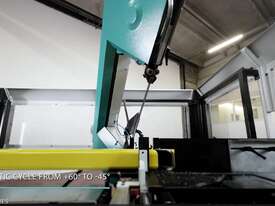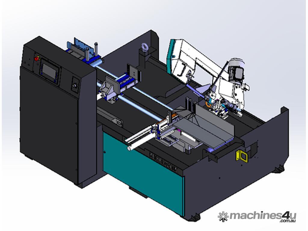 - Innovative 4 controlled axis system (lateral movement and closing of the vice, material feeding and sawframe rotation), all managed by numeric control.