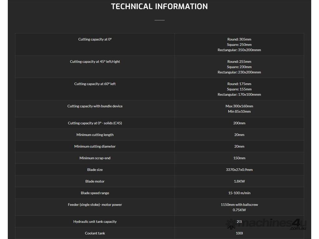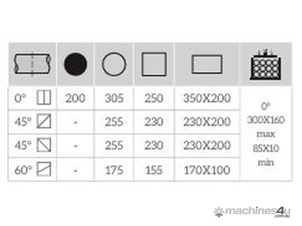 - Cutting range from +60° to -45° with NC rotation; Cutting capacity: up to 305mm (round profile at 90°);