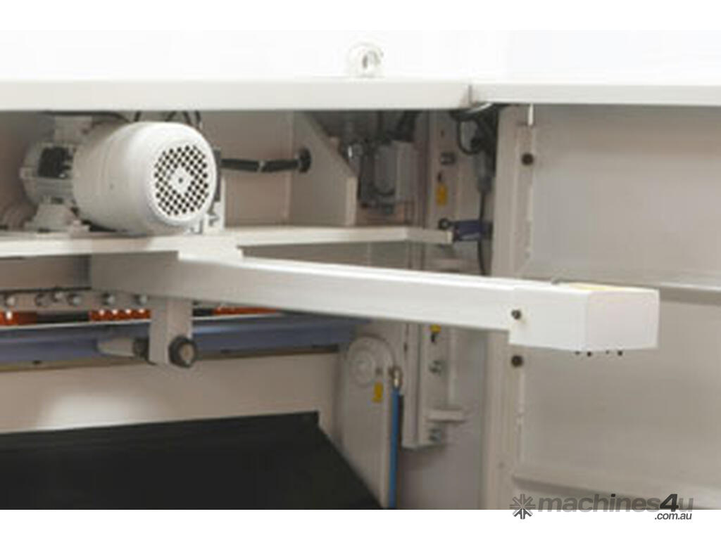 Quick and precise blade gap adjustment system is located on the right side of the machine. Blade gap adjustment required for high quality cutting can be performed non-gradually from a single side. Modern design, strong steel welded construction and perfect cutting quality.