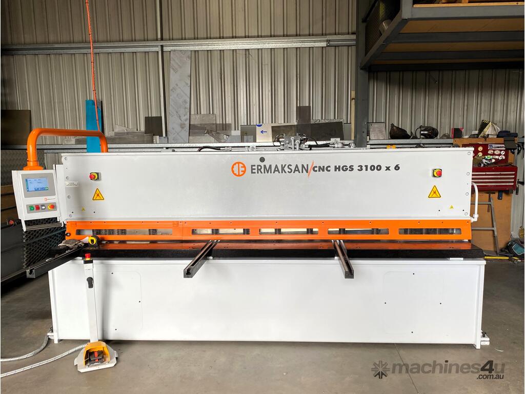 Experience European quality hydraulic shears from Ermaksan (CNC HGS 4100-6) with a capacity of 4100 x 6mm (mild steel). Improve productivity and efficiency.