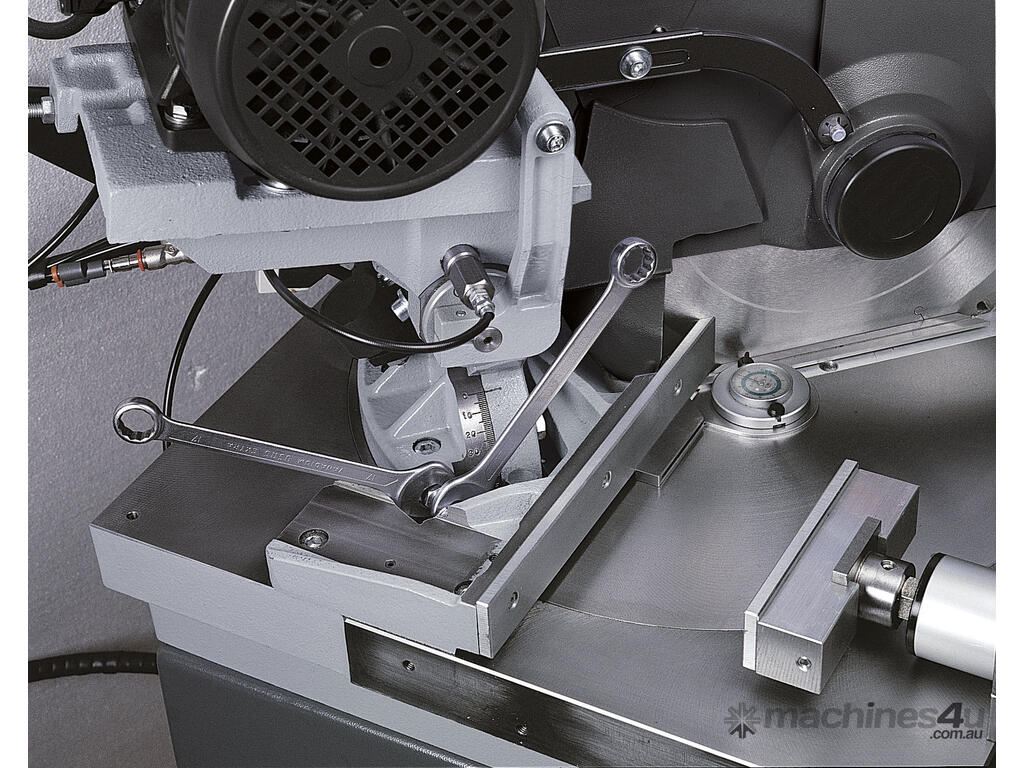 On the model 352 MA (pneumatic vice), which is supplied with a steel base, the vice closes automatically when lowering the head.