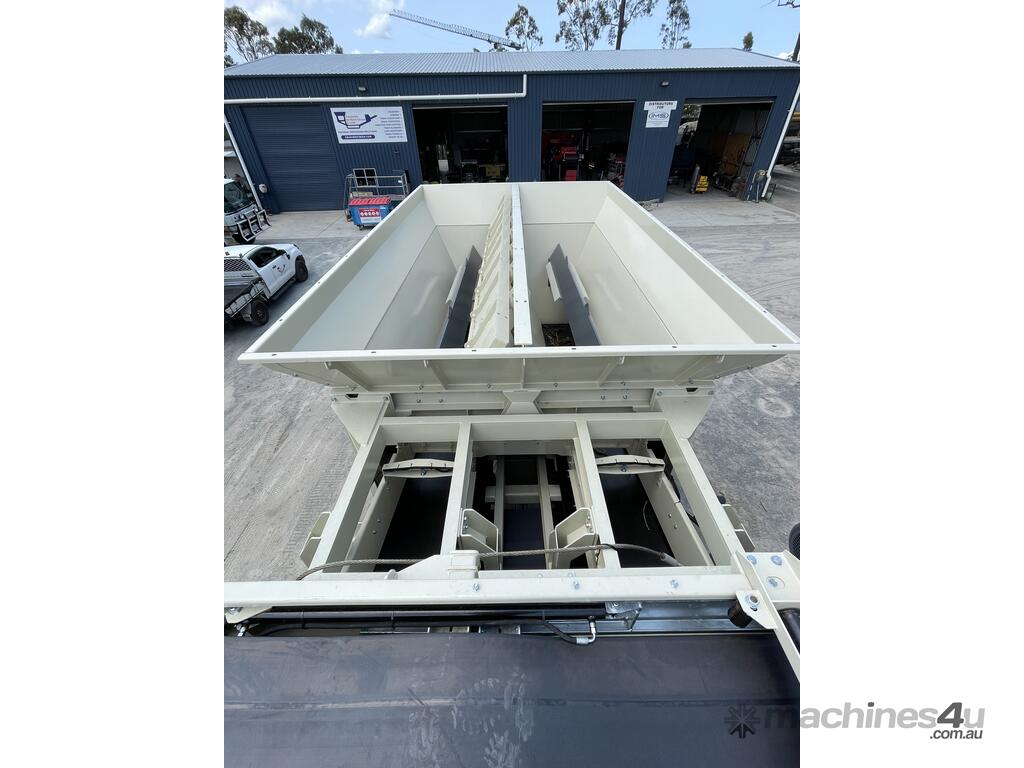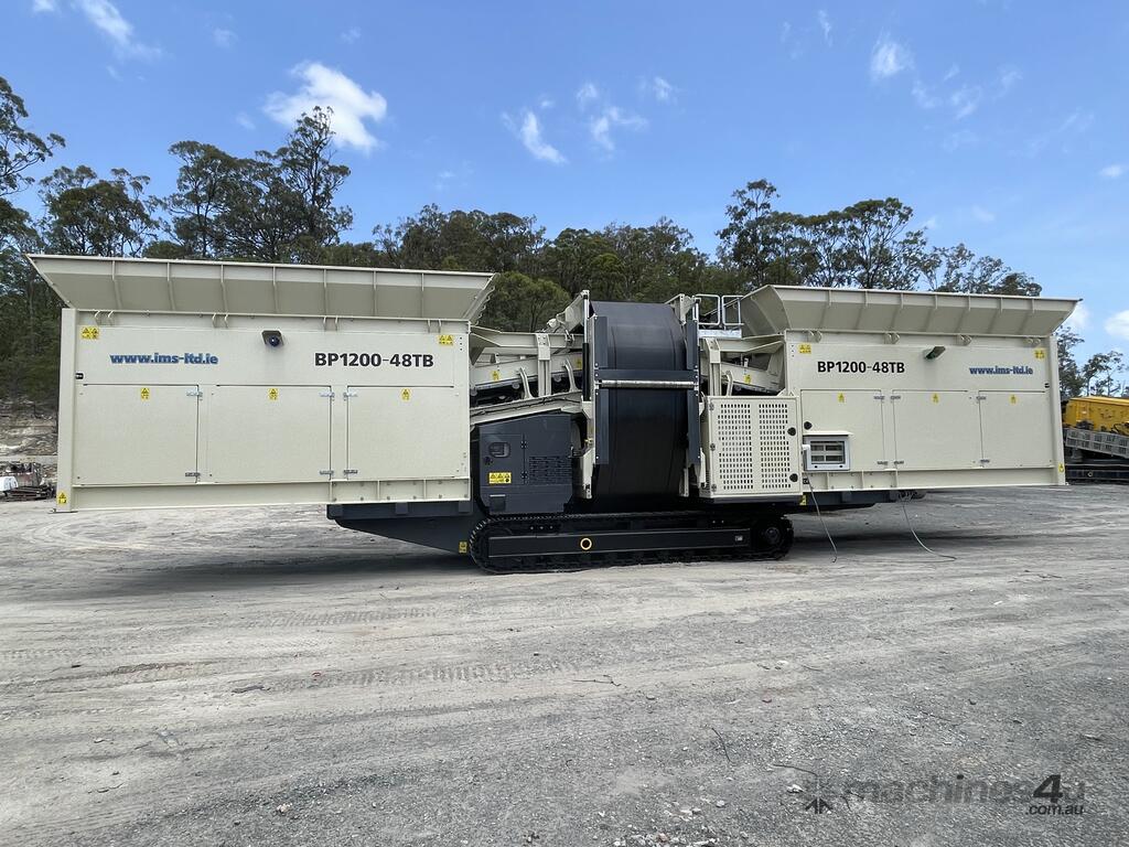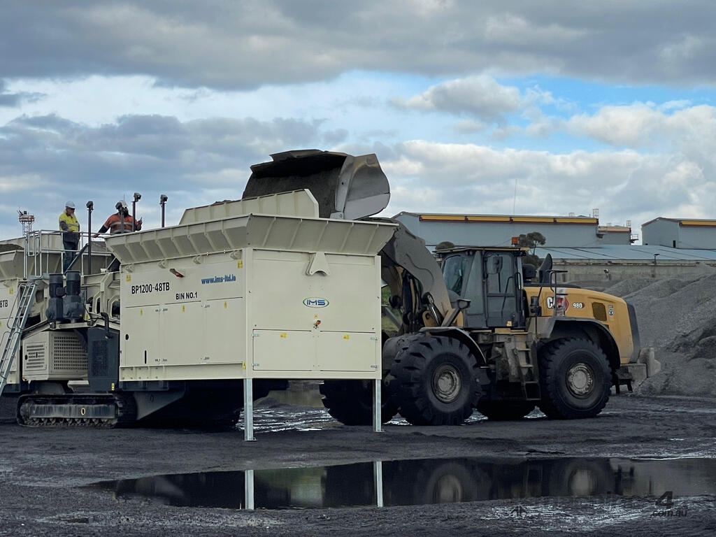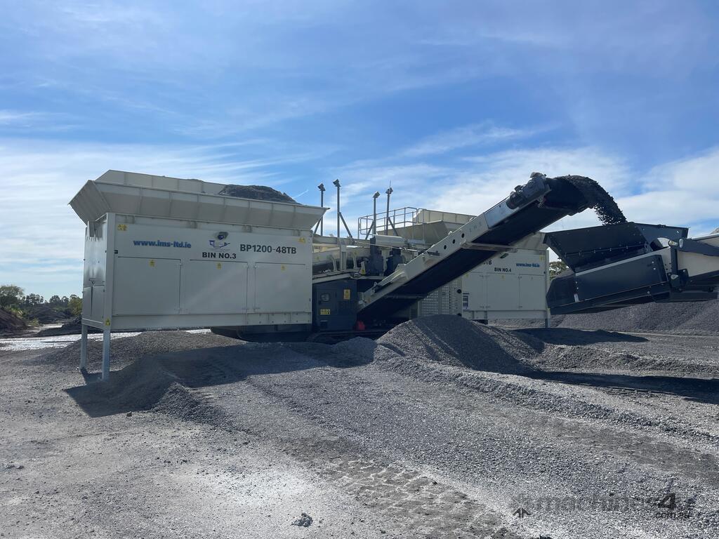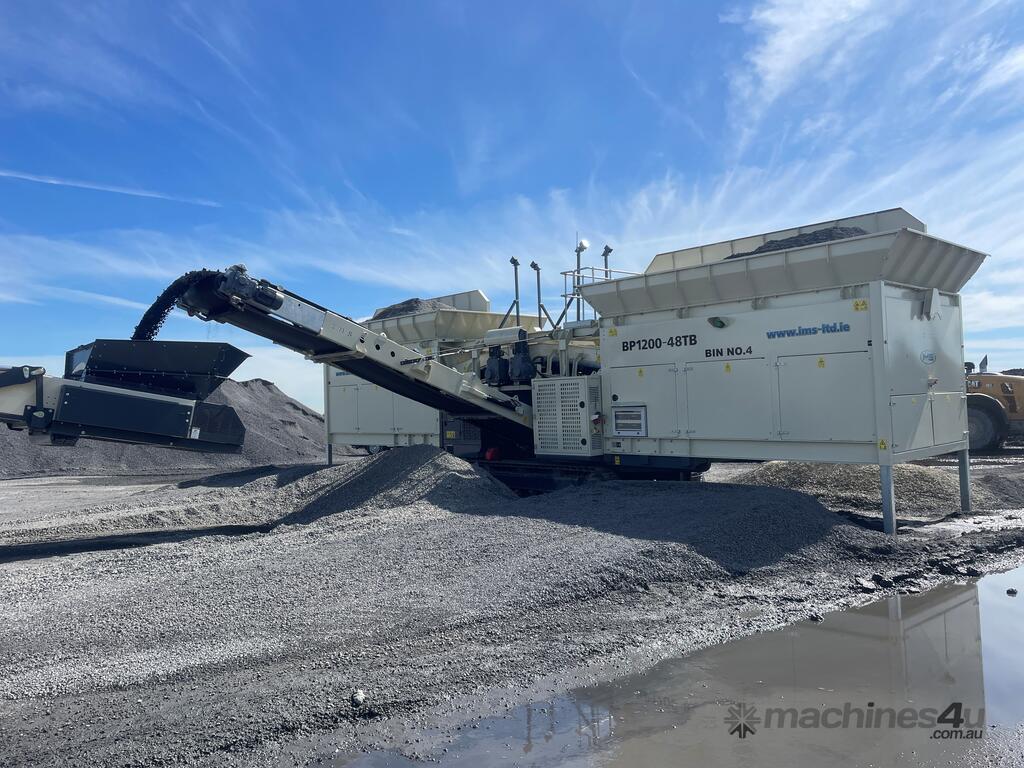 The IMS-1200-48TB Track blender has four 5 meter long feed hoppers all holding 12m3. Each feed hopper conveyor is fitted with belt scales and has a front of hopper flow gate, variable speed. Powered by a Cat C7 genset that can be connected to mains power. The blender is fully automated with a PLC control and recording system that can be controlled from a iPad in a loader or site office.
