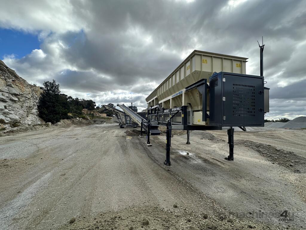 The electric blender has two five-meter-long hoppers, both conveyors fitted with belt scales and variable speed, the small hopper ratio is 10-200 TPH and the larger 100-400 TPH all controlled by a PLC control and recording system with the option of iPad control from the loader and there is a remote. The PLC / iPad can change clients, batch sizes, mix percentages and can be used to load trucks direct by setting the batch to the truck ID and total tonnes for the truck and multiple trailers, it will stop after each unit reaches the programmed tonnes and the operator restarts for the next truck or trailers. If one of the products runs out the plant will stop or there is the option of fitting sensors to both hoppers that will stop/start the plant automatically.