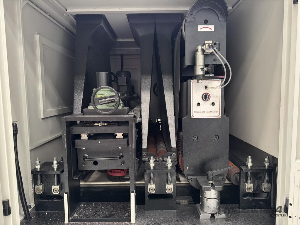 - The tension roller oscillates to correct the deflection of the abrasive belt