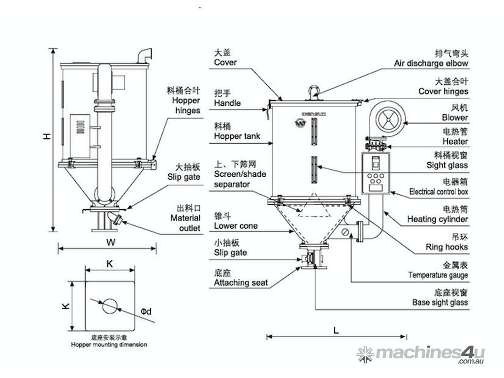 Giant Hopper Dryer, Air-recycling Hopper dryer also available.