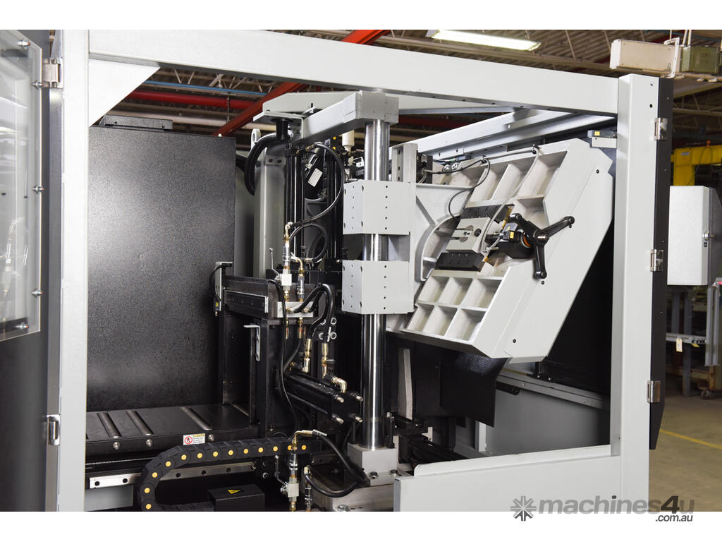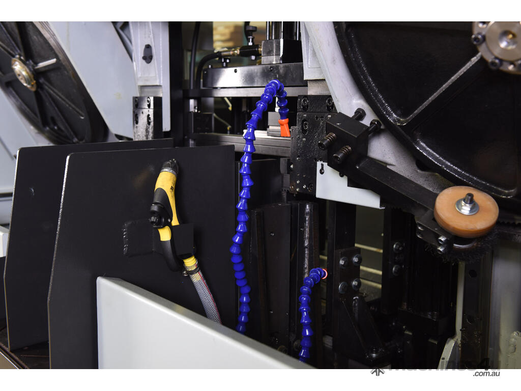 It is an automatic horizontal band saw providing accurate 90° metal cutting. Dual down feed system allows the operator to control both feed rate and feed force, for more efficient cutting.