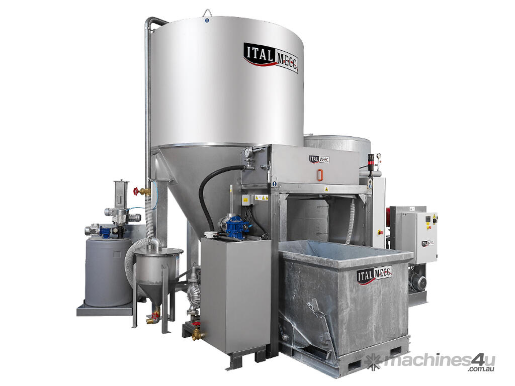 The dirty water is collected in a pit. The sump pump loads the water into the silo filtering system. A central inner tube releases them near the cone. The heavier water releases the suspended solids in the cone by gravity and then goes up clarified because lighter. The clean water, through overflow, is collected in a tank ready to be reused. A booster pump will send it back the workshop machinery for the cycle to happen again.