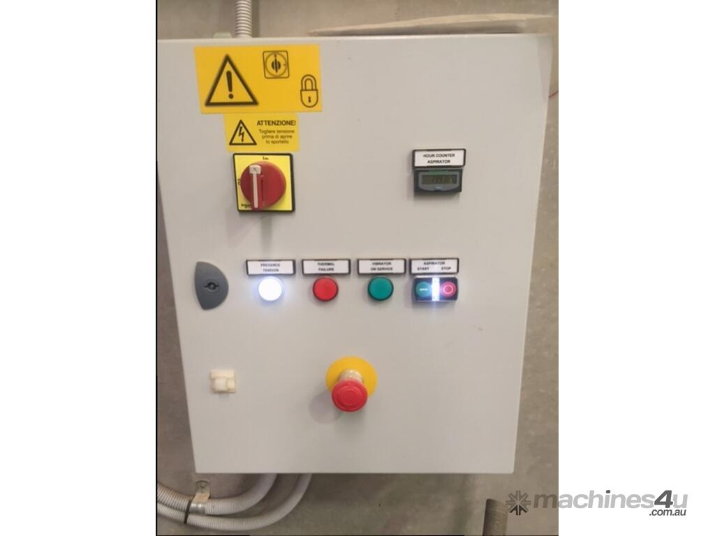 100% Italian made Dust extractor, very efficient 7.5kw motor, very quiet shaker, fully integrated controller for star delta starting of fan and timing control of shaker. Full Ce standard. Inspection panel to remove and jammed material