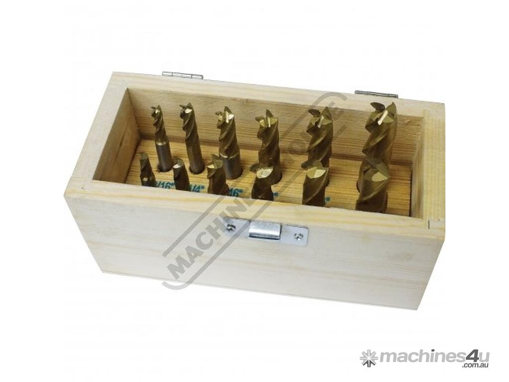 Mill cutter set with a range of both slot drills and end mills. Suitable for hobby work and small workshops.
