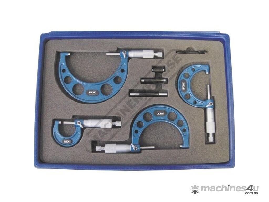 Measumax micrometer sets include a deluxe fitted case, adjustment wrenches and setting standards.