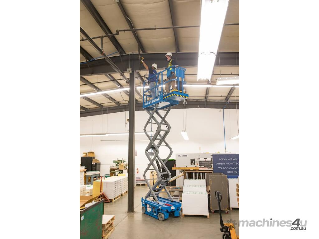 The Genie® GS™-1932m E-Drive scissor lift is designed with a compact footprint and features to enhance productivity for operators, offering a lower total cost of ownership and higher returns for equipment owners. Its all-electric AC drive system offers productive power for getting around indoor and outdoor jobsites with quiet, zero-emissions operation.