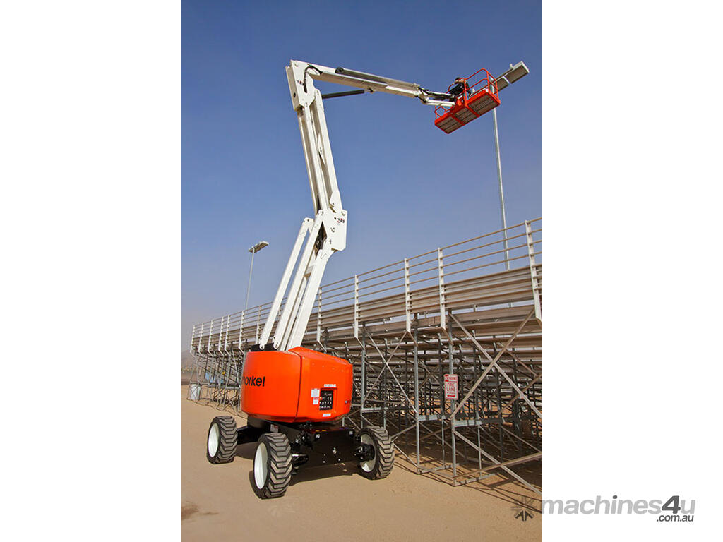 Launched in 2012, the Snorkel A62JRT is a high performance articulated boom lift, featuring a class-leading working envelope. With compact dimensions, zero tailswing and an ultra-tight turning radius, this lift is ideal for working in confined spaces, and also has powerful hydrostatic 4 wheel drive for tackling rough terrain jobsites. Ideal for construction and industrial applications.