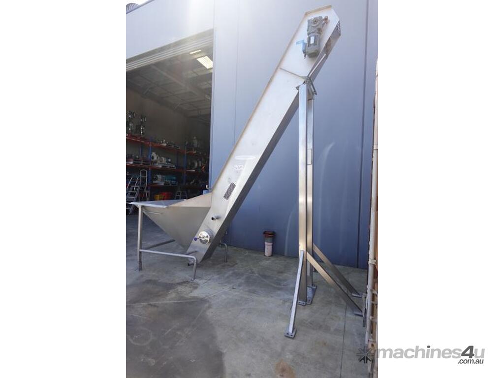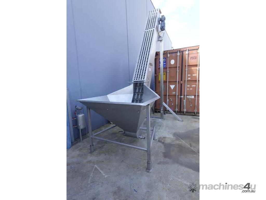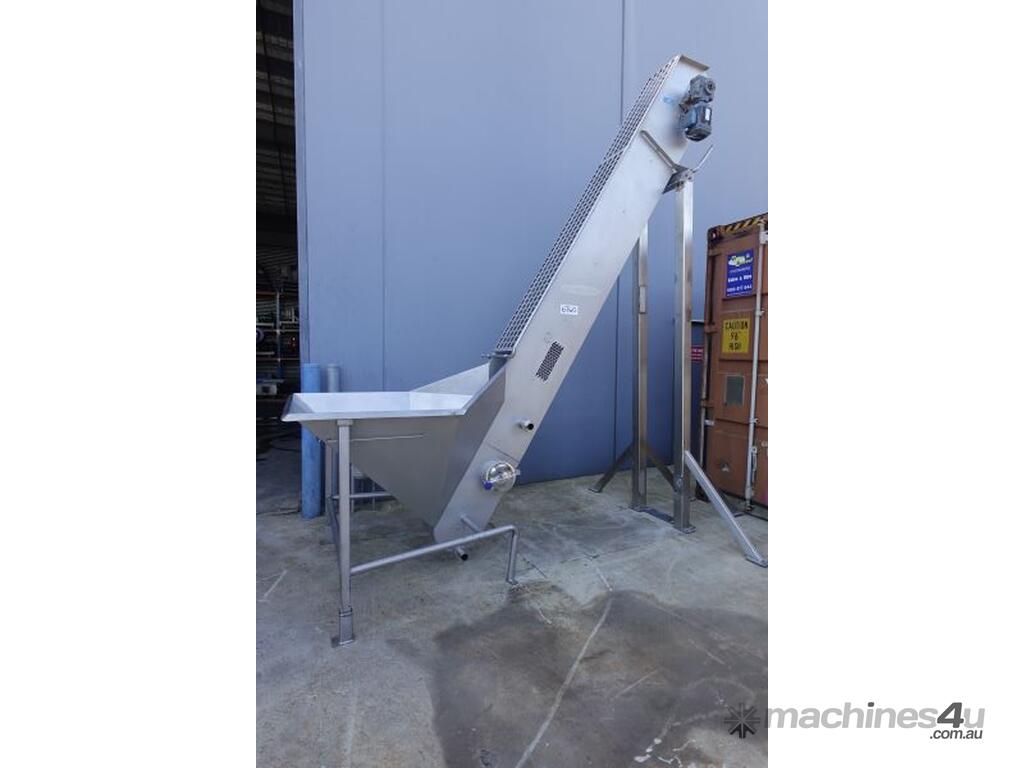 Conveyor with a stainless steel mesh belt with 75mm high cleat.