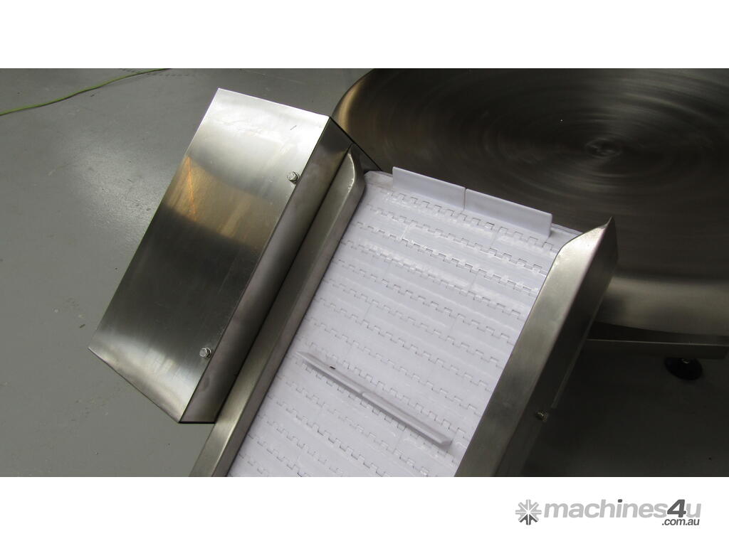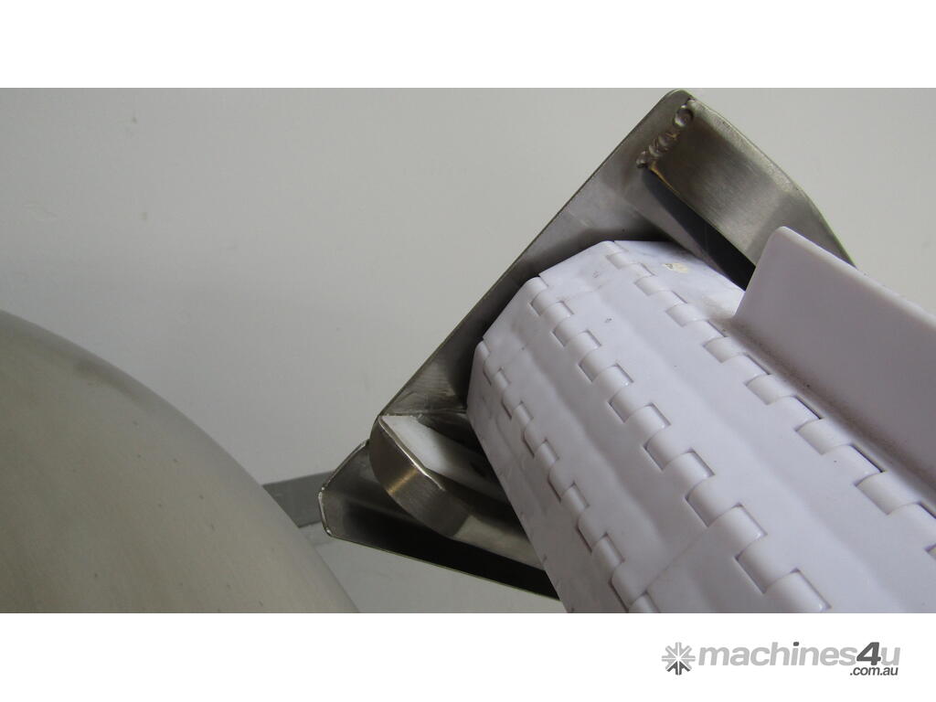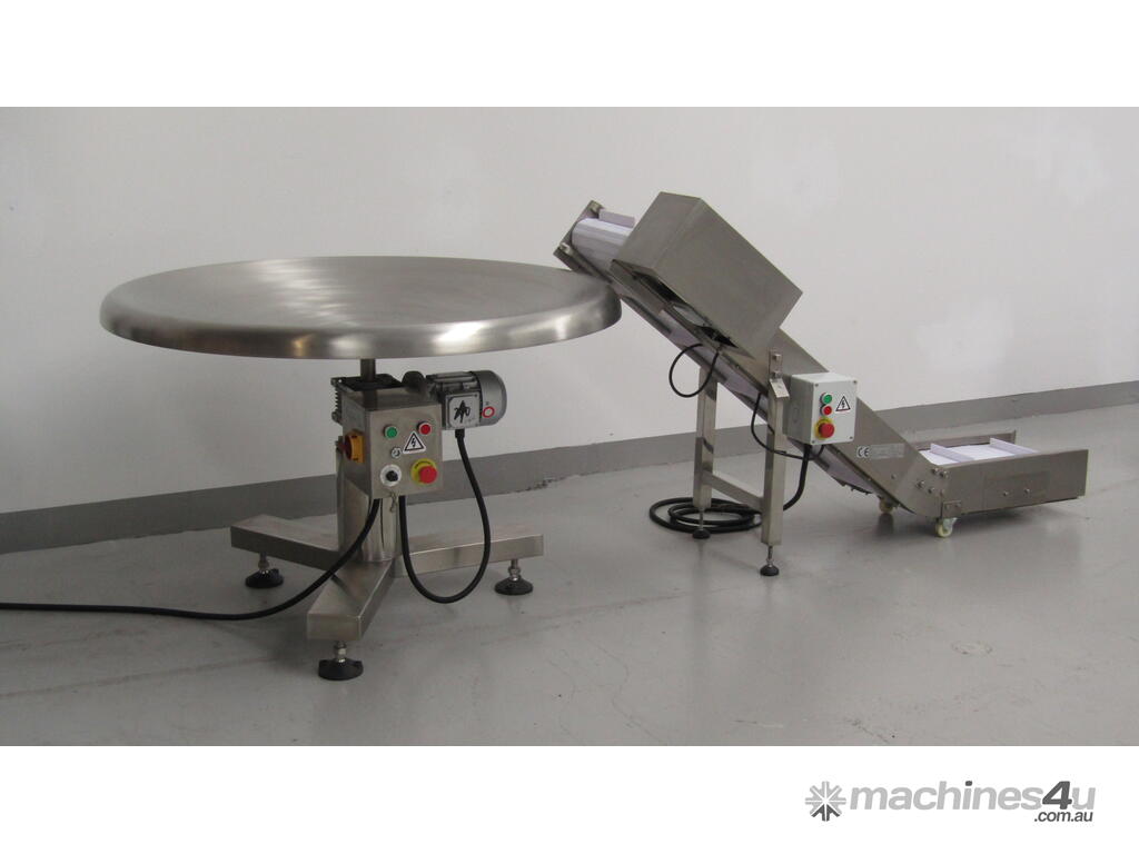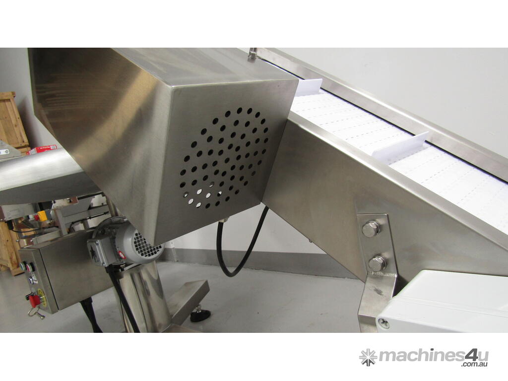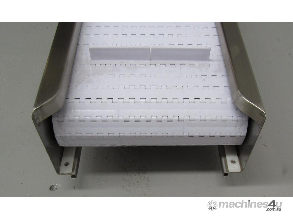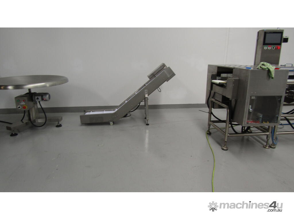 This stainless steel conveyor is designed to elevate product from a low level to a higher level.