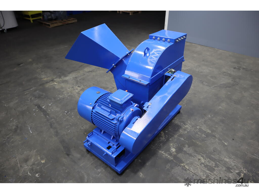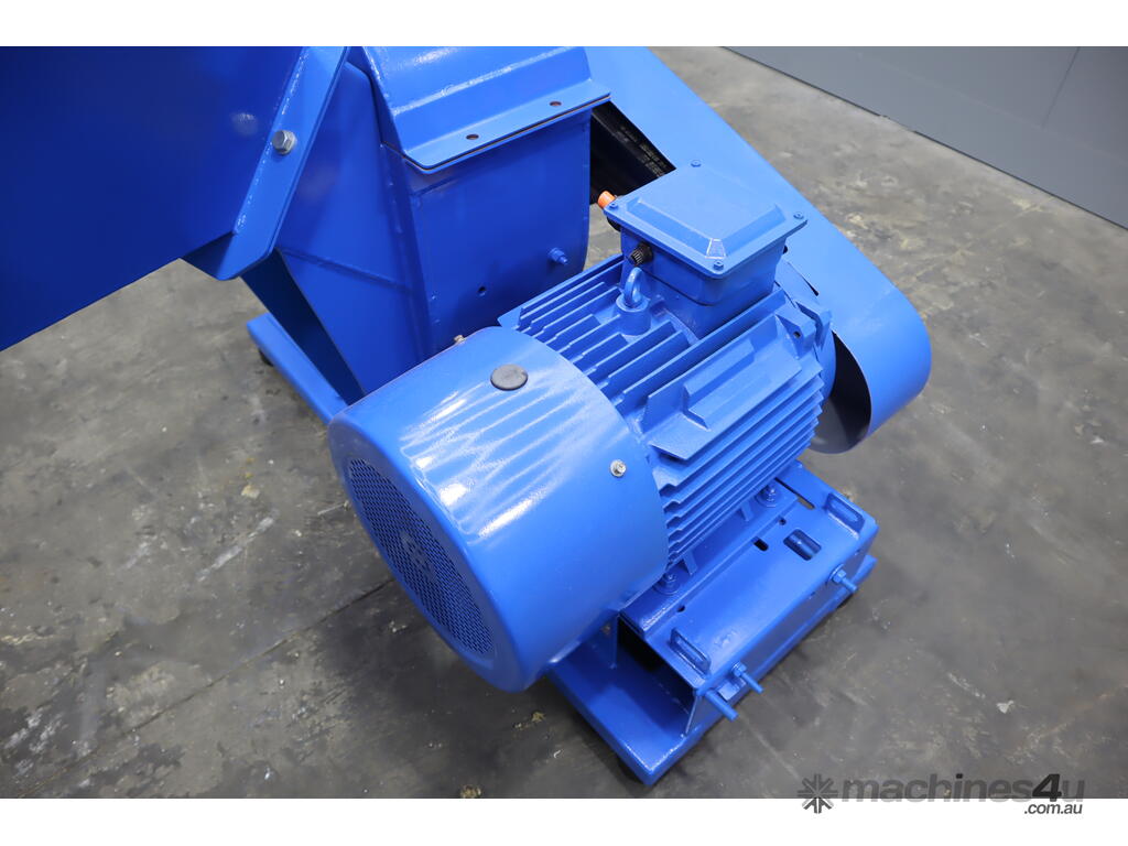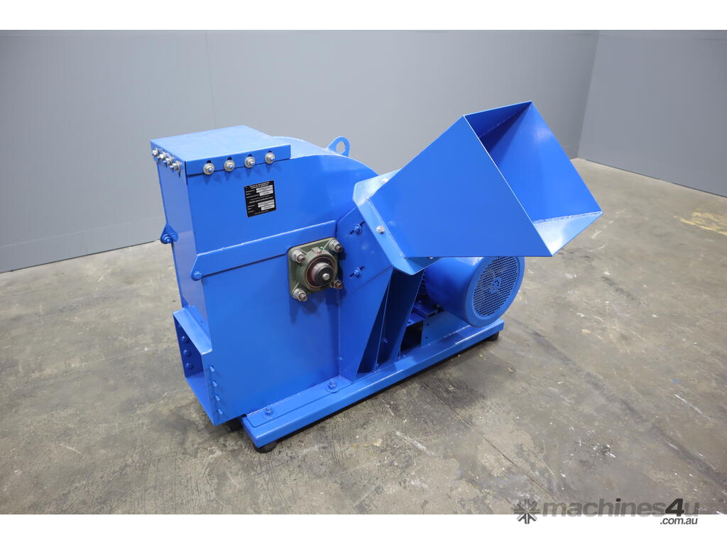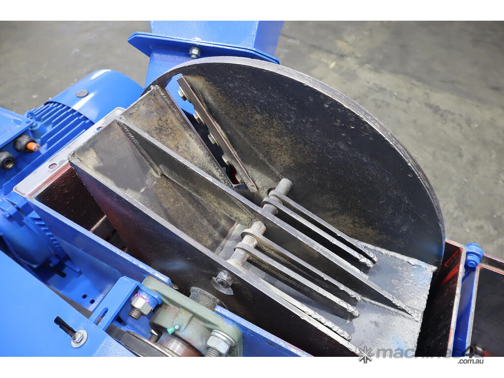 Inside the woodchipper consists of a disc with blades, hammers and a screen so it can output a consistent product. It runs off a large 22kW electric motor.