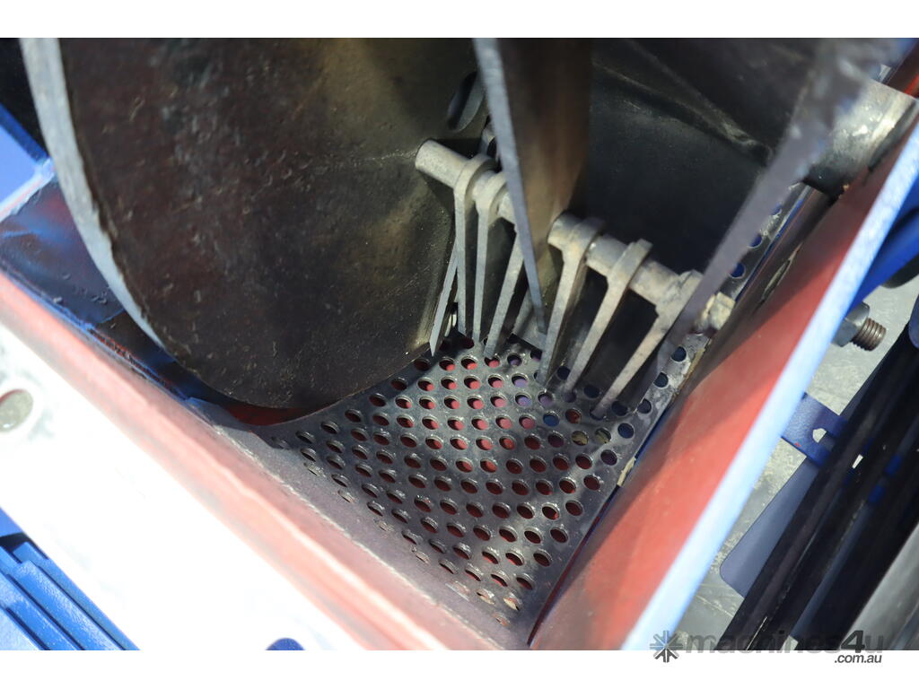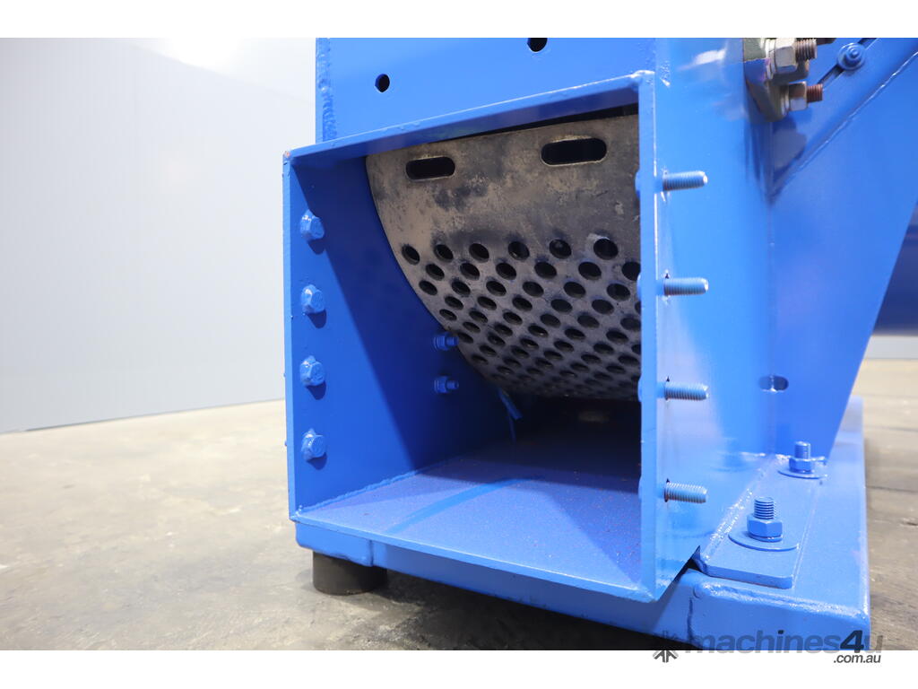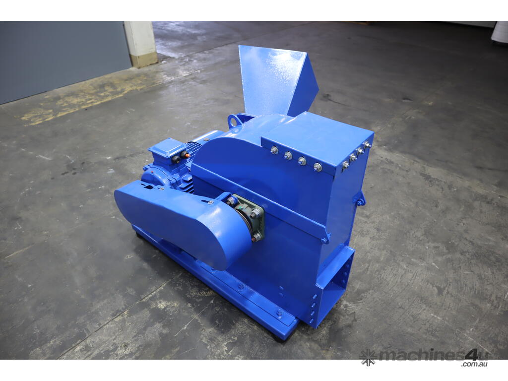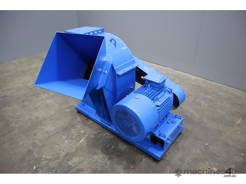 Inside the woodchipper consists of a disc with blades, hammers and a screen so it can output a consistent product. It runs off a large 22kW electric motor.