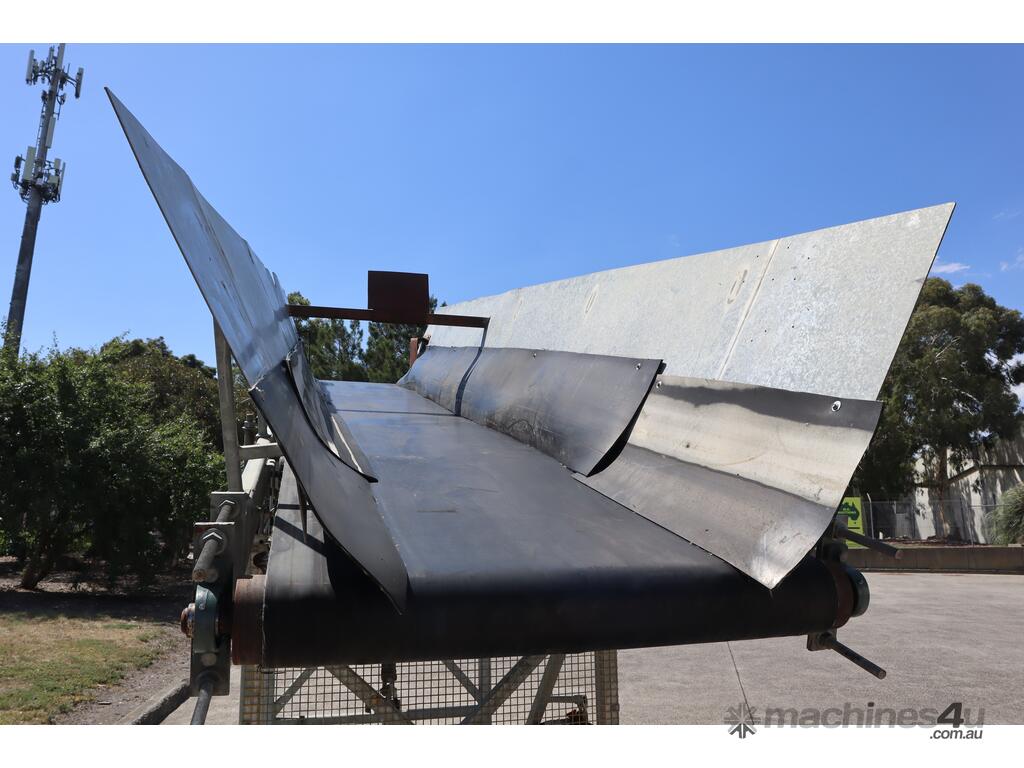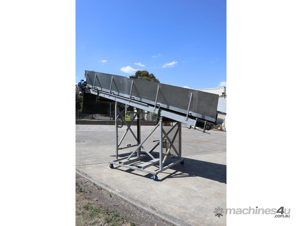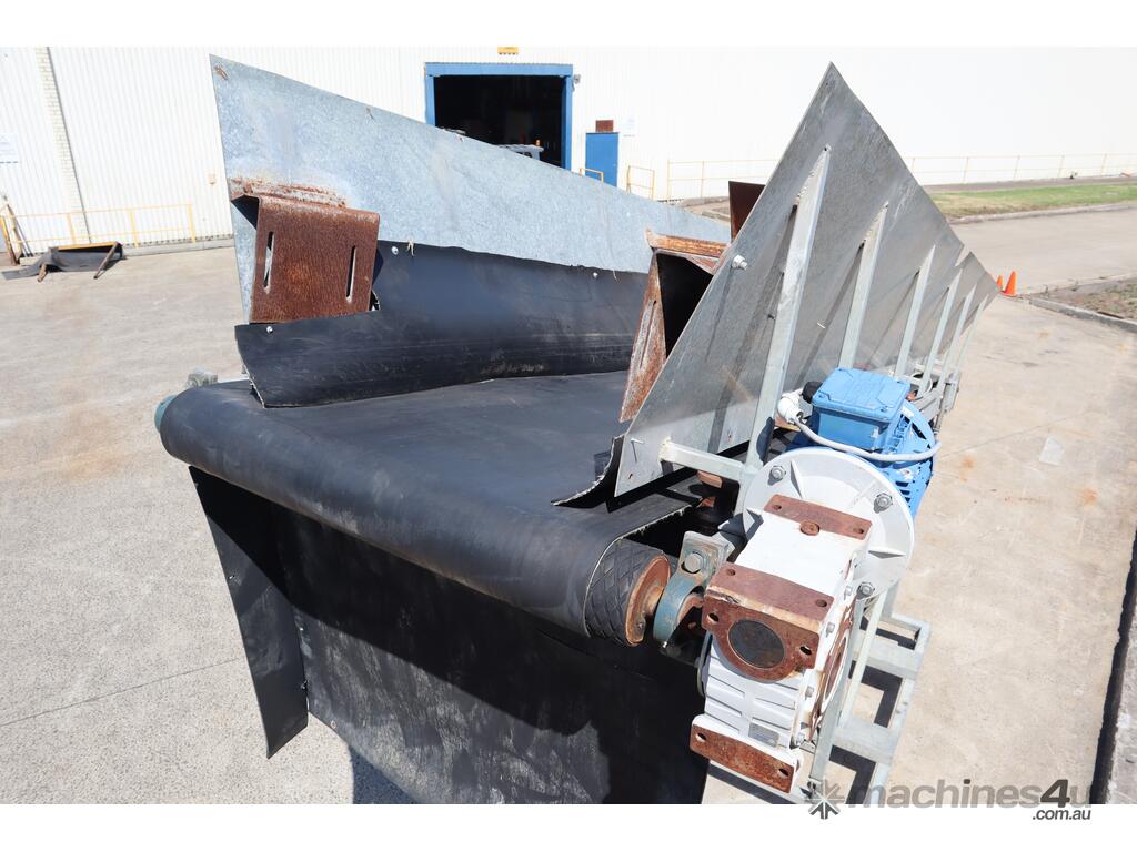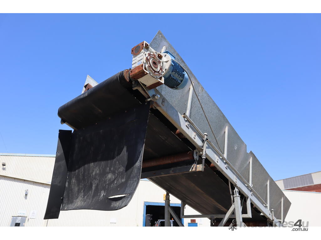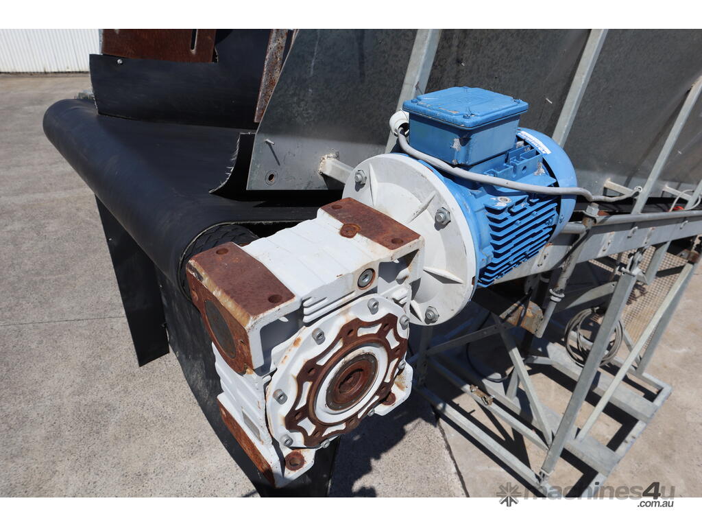 The conveyor's frame and guarding is made out of galvanised steel and the belt is black thick rubber.