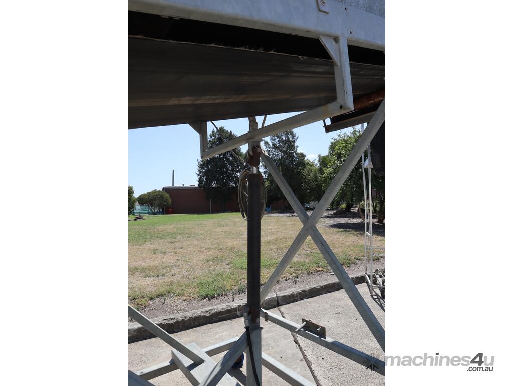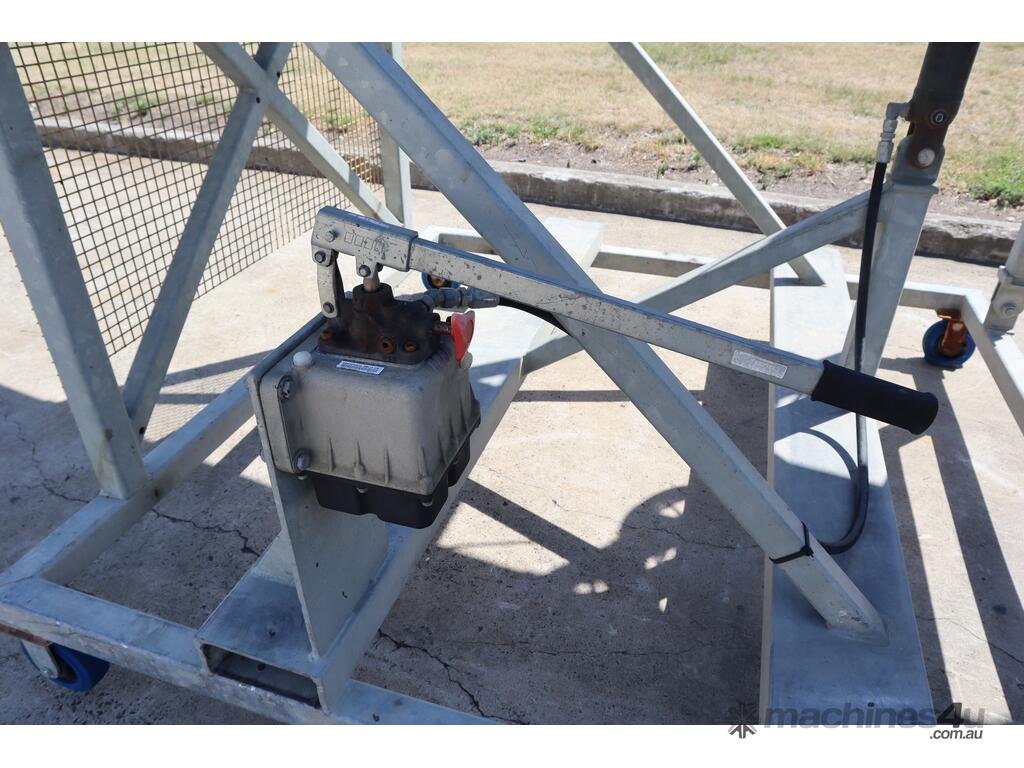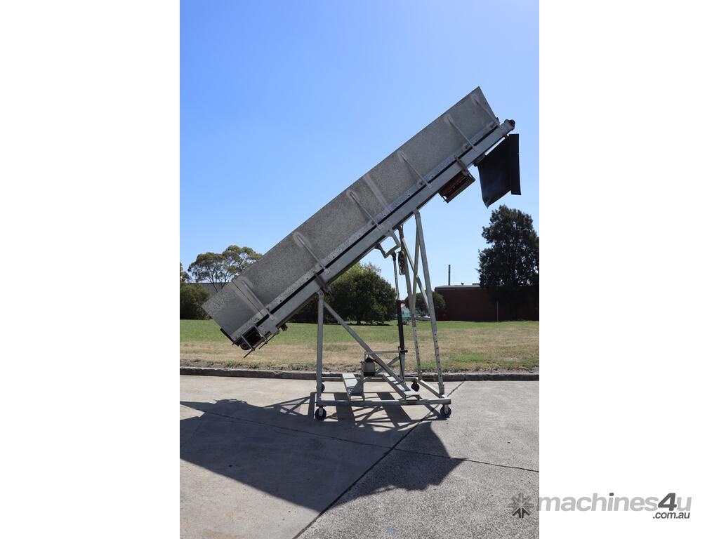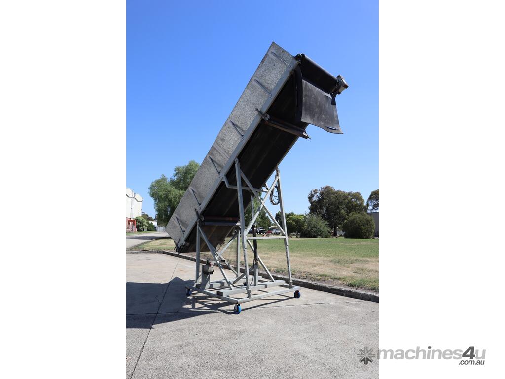 The incline angle is adjustable via the manual hydraulic pump. The discharge height has a range of 3m to 4.5m.
