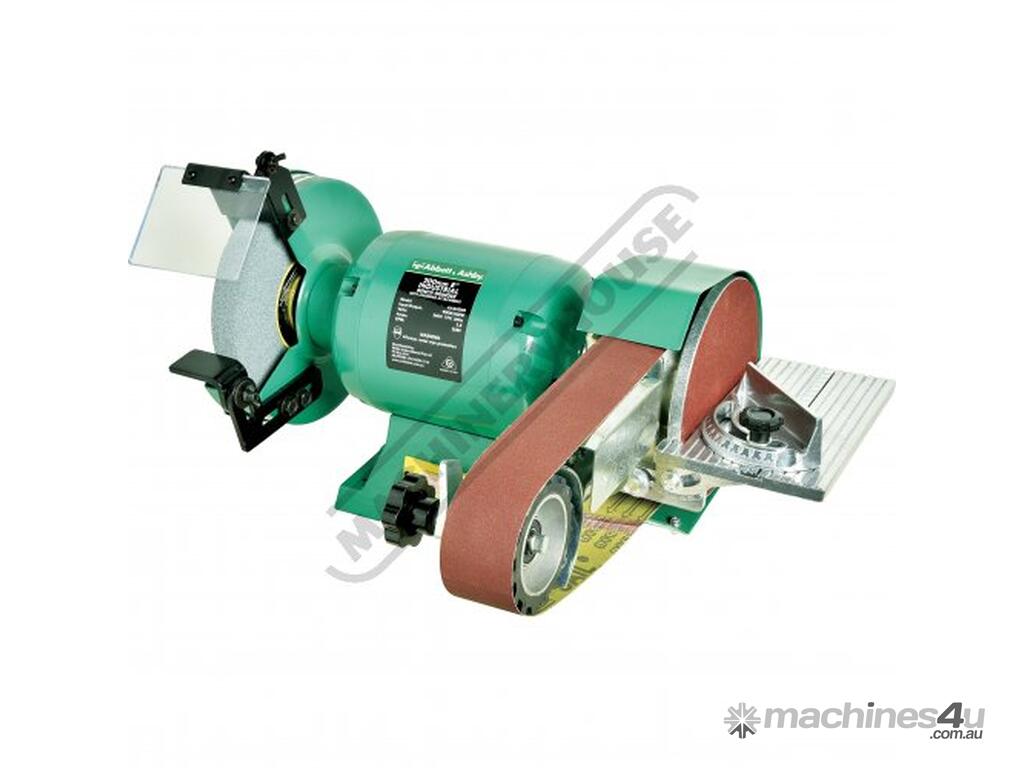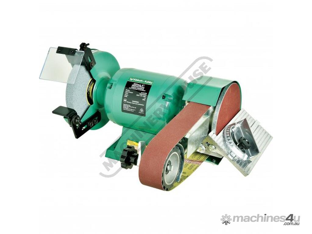 "Abbot & Ashby Industrial Bench Grinder with NEW DESIGN Abbot & Ashby Linisher Attachment now comes complete assembled out of the box."