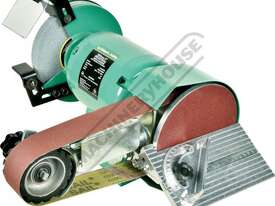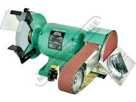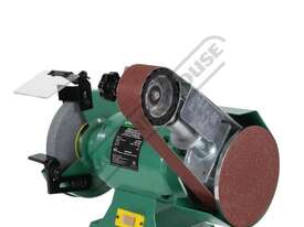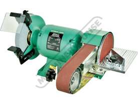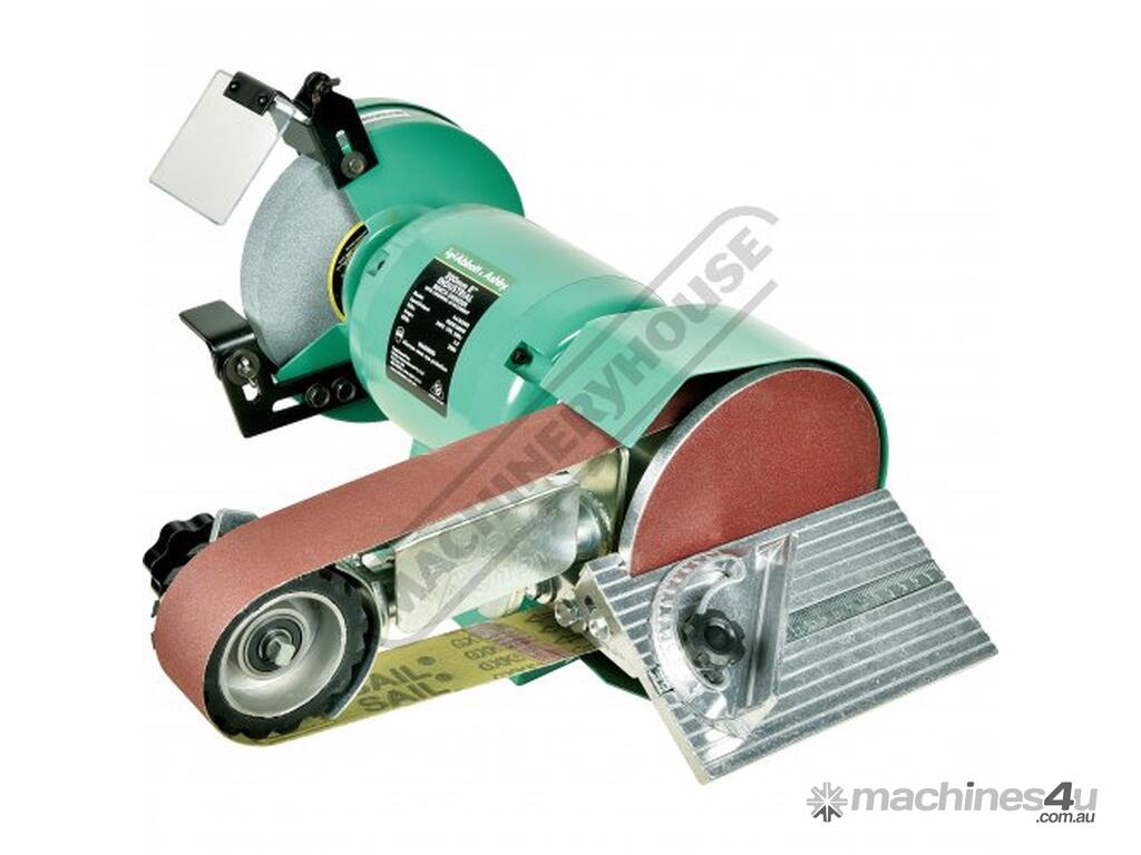 The machine’s 4 rubber feet helps to eliminate any vibration and allows the machine to run smoothly no matter if stone grinding or belt linishing. This versatile machine has a 0.6kW, 0.8HP, 240-volt motor with ample power to drive both the grinder wheel and belt linisher simultaneously. The grinder wheel side comes fitted with safety eye shields and tool rests which are fully adjustable to suit every application and operator.
