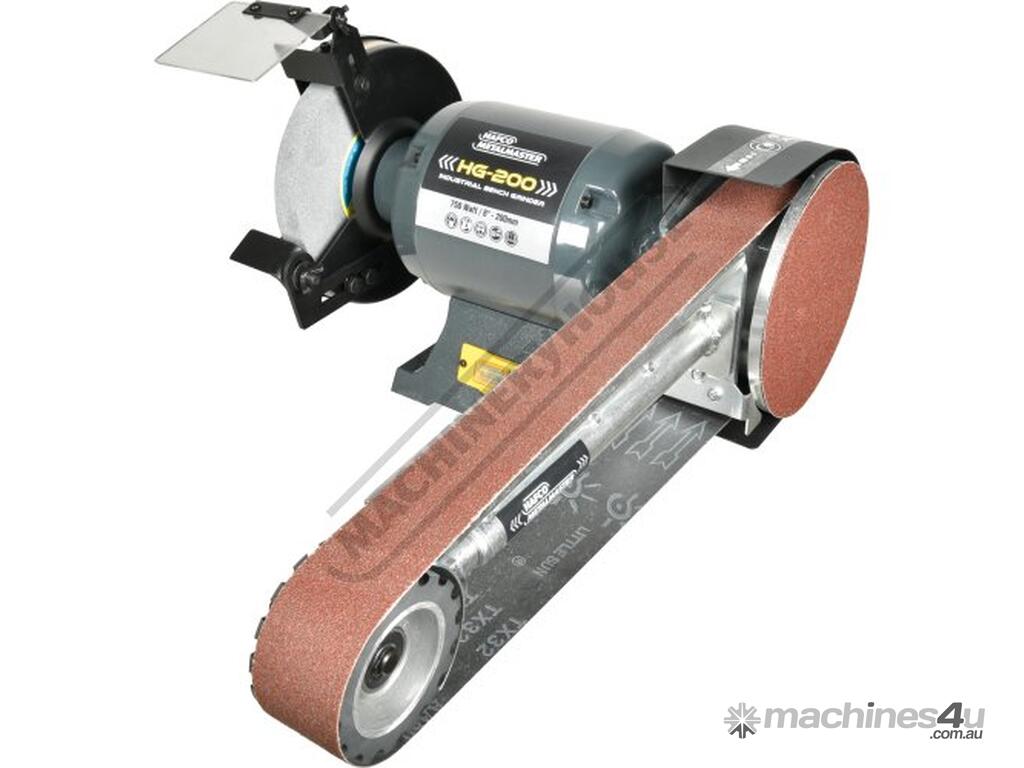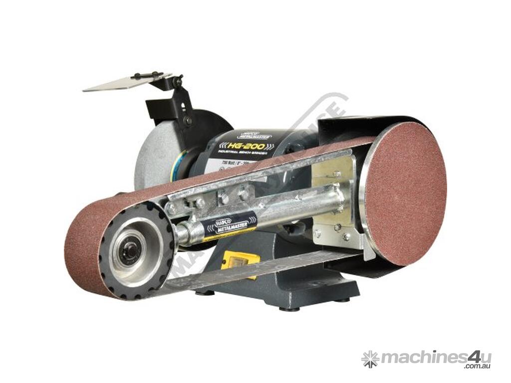 Our HAFCO METALMASTER bench grinder and linisher attachment combo is a well-established design that has proven its reliability in the Australian and New Zealand markets over the years. It boasts a sturdy construction and consistent performance that you can rely on. Equipped with a powerful 1hp (0.75kw) motor and sealed ball bearings, our grinders are built to last and provide trouble-free operation for many years to come. The linishing attachment is perfect for a variety of finishing tasks including tool sharpening, edge sanding, weld smoothing, and polishing on materials such as wood, plastics, metals, and ceramics.