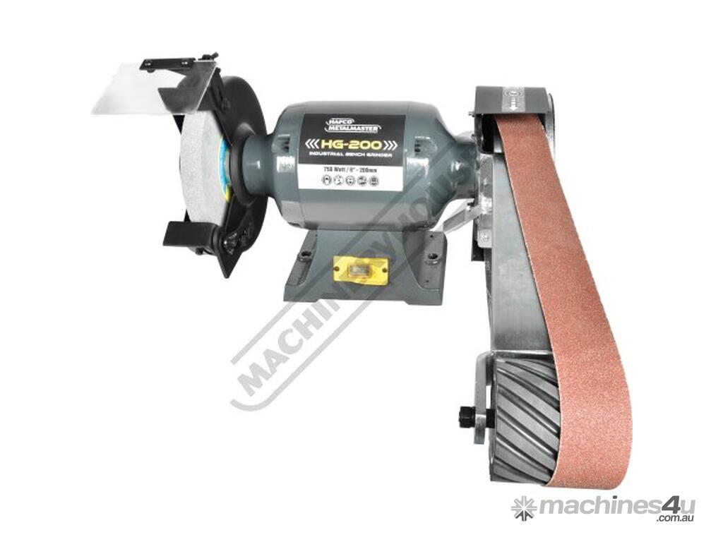 Our HAFCO METALMASTER bench grinder and linisher attachment combo is a well-established design that has proven its reliability in the Australian and New Zealand markets over the years. It boasts a sturdy construction and consistent performance that you can rely on. Equipped with a powerful 1hp (0.75kw) motor and sealed ball bearings, our grinders are built to last and provide trouble-free operation for many years to come. The linishing attachment is perfect for a variety of finishing tasks including tool sharpening, edge sanding, weld smoothing, and polishing on materials such as wood, plastics, metals, and ceramics.