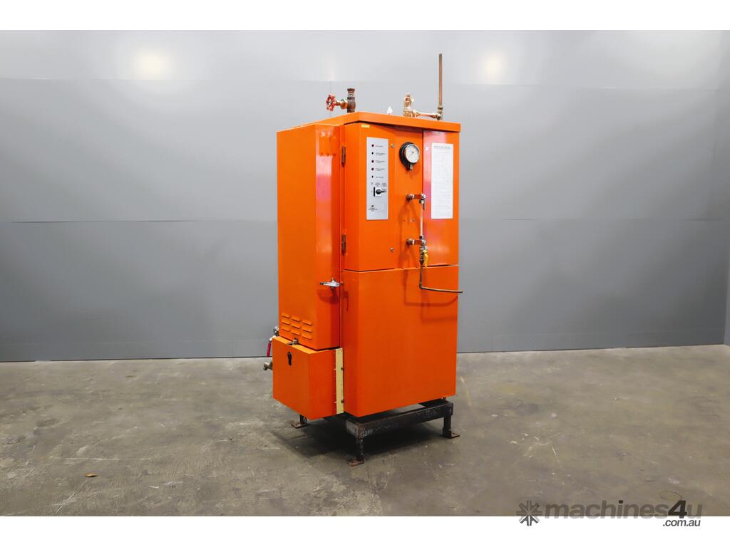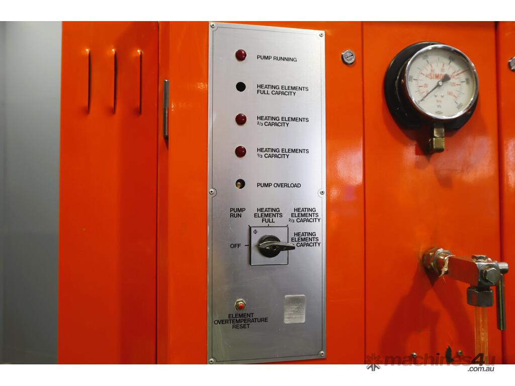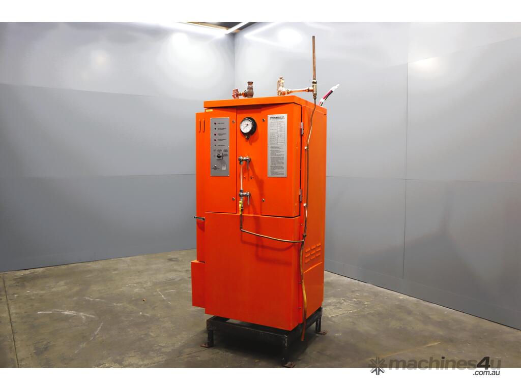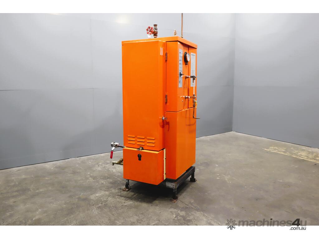 Simons VS 580 electric steam boiler in excellent condition. Australian made heavy duty industrial unit designed for reliable steam generation in commercial and industrial environments. This boiler is rated at 100 kW and well suited to facilities requiring consistent, controllable steam output with minimal combustion related maintenance. Unit presents in solid condition and is fitted with pressure gauge, safety valves, and inspection access.