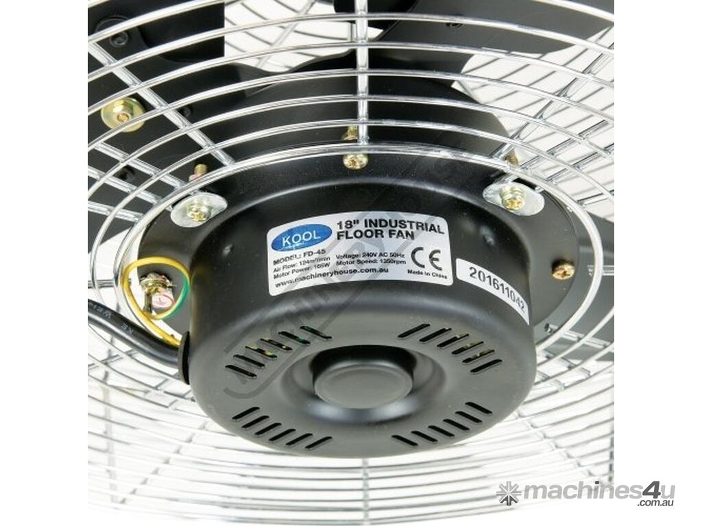 KOOL Industrial Floor Fan - 450mm FD-45 Fan swivels 140º inside frame 124 cubic M/min Air Flow