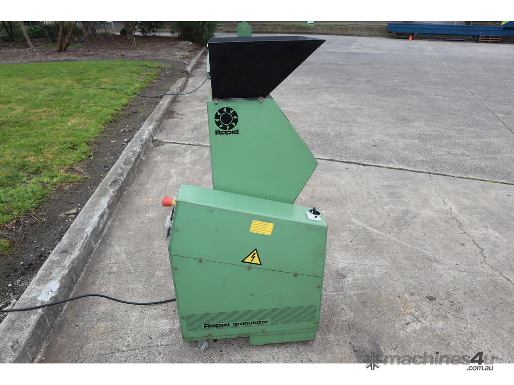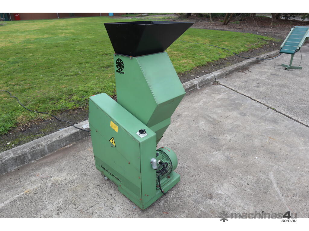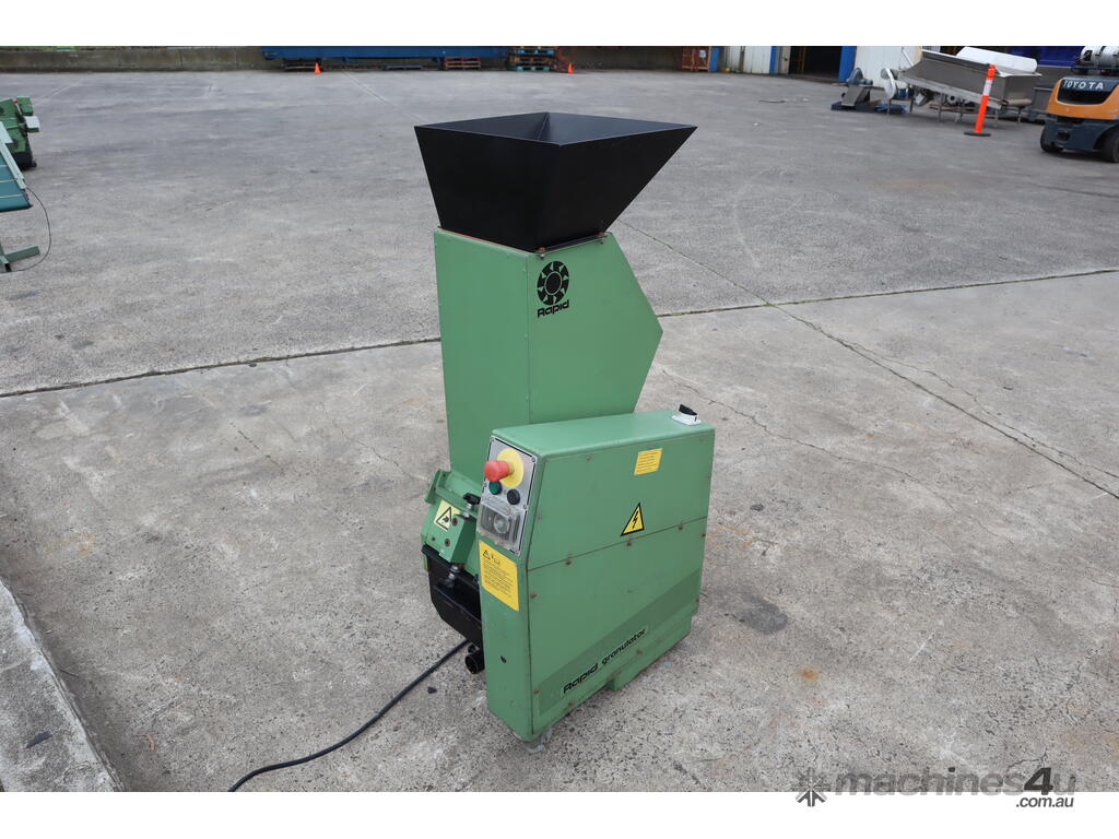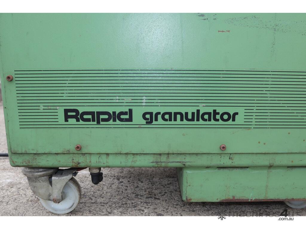 "widely used in the plastics industry for recycling and reprocessing plastic waste from injection molding, extrusion, and blow molding operations. Key features of this granulator include a robust staggered rotor design for efficient and precise cutting, an easily accessible cutting chamber for quick maintenance, and built-in safety interlocks for operator protection. The benefits of this unit include consistent and uniform granulation with minimal fines, enhanced durability for long-term operation, and significant cost savings by reducing waste disposal costs and enabling material reuse, thereby supporting sustainable manufacturing practices."