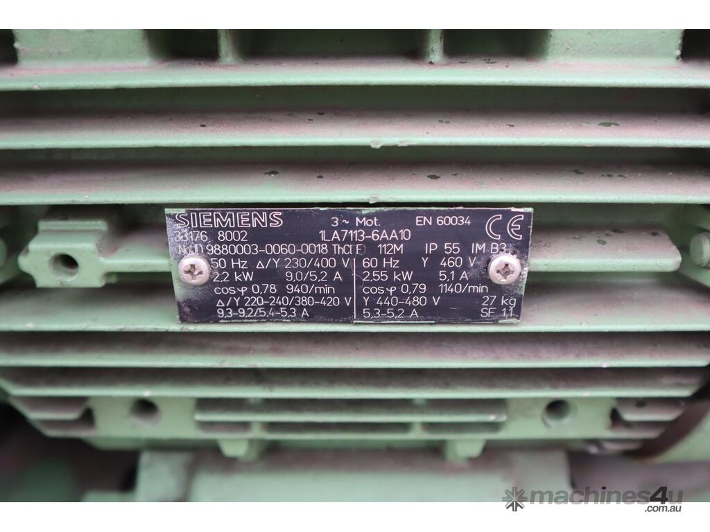 - Power: 2.2 kW at 940 RPM