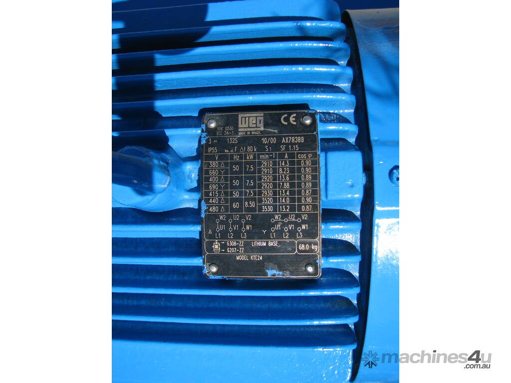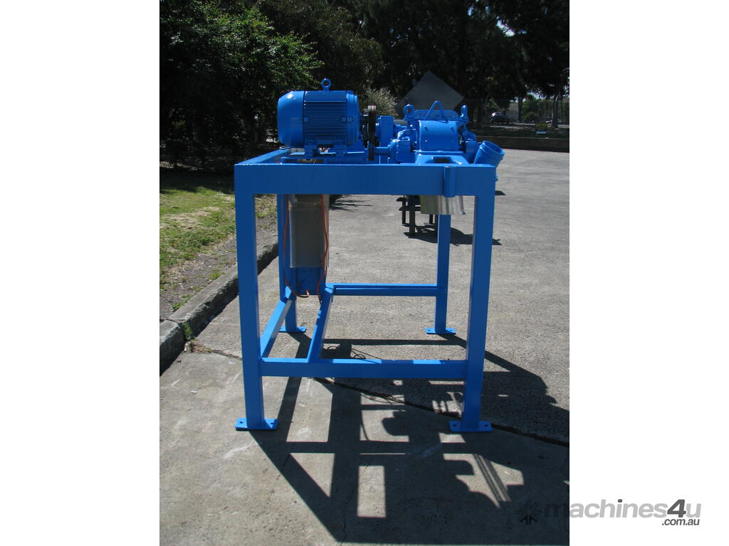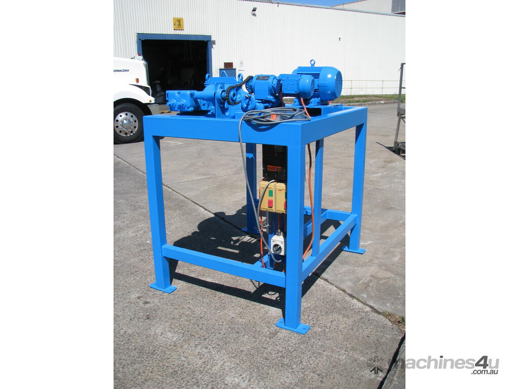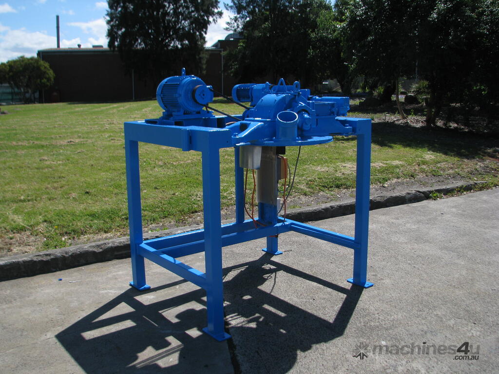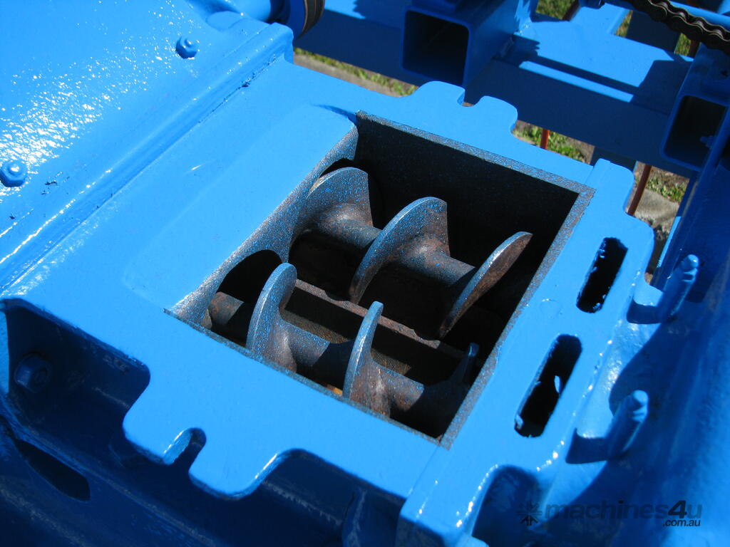 The machine has a dual horizontal screw feed assembly driven by 0.75kW motor.