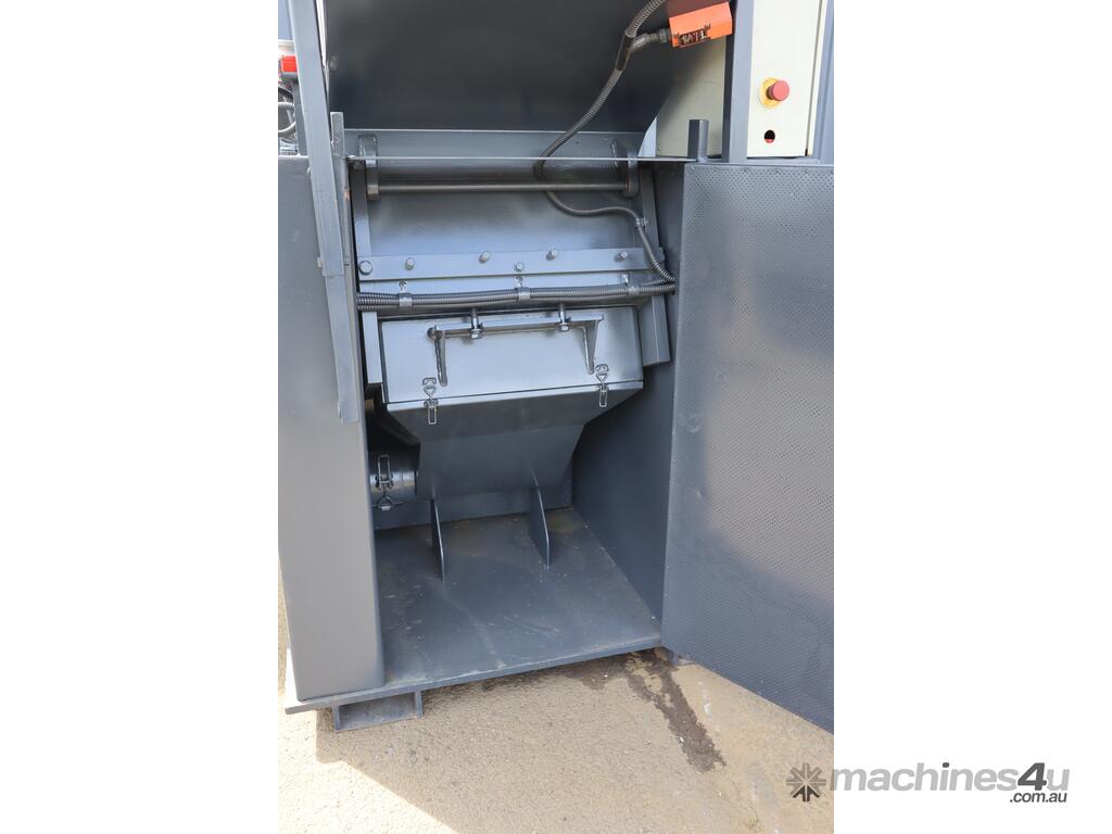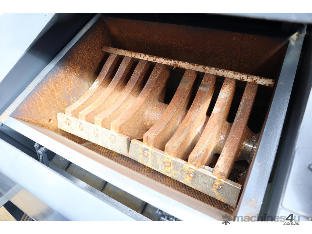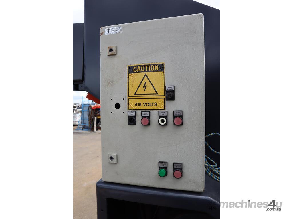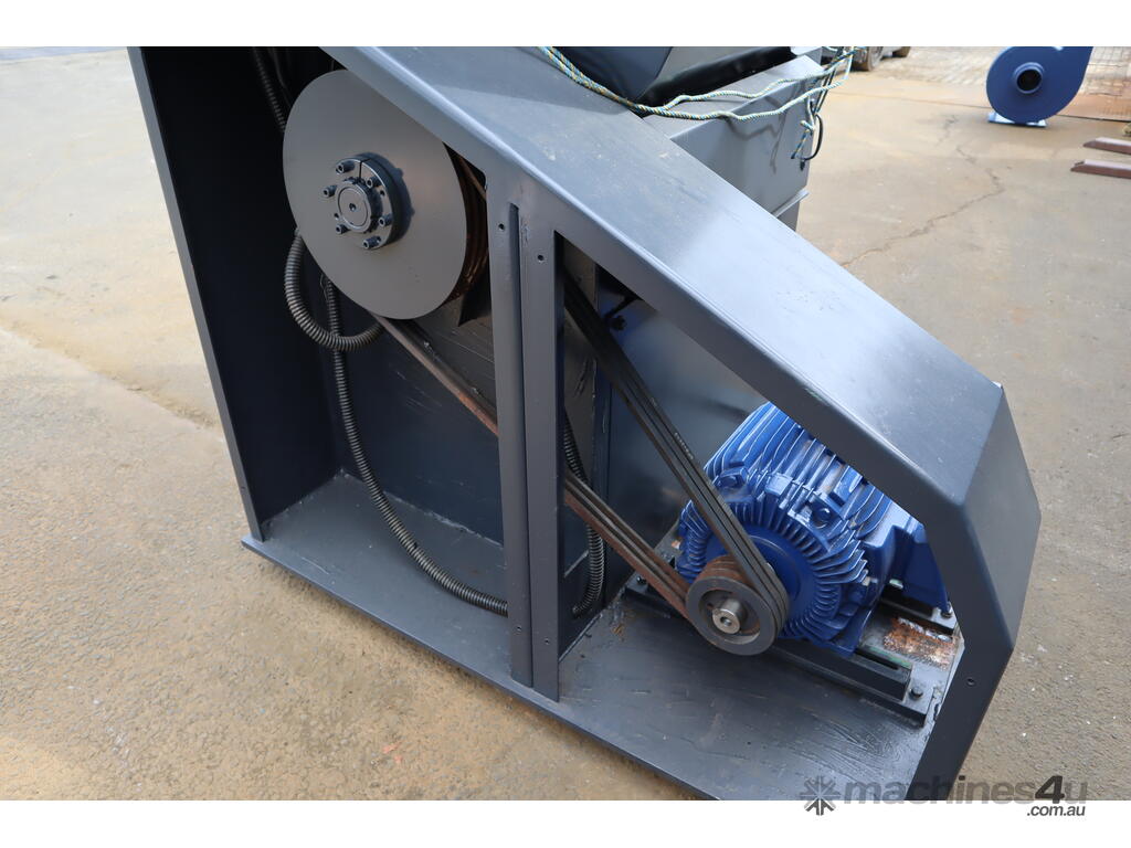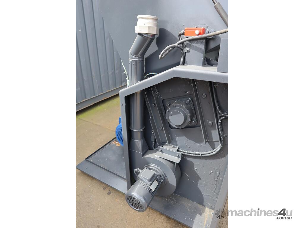 ``This granulator has an inbuilt feeder designed for sheets and webbing. There is also a blower built on for extraction of granules. It runs off a large 25HP Teco motor and can granulate all types of plastic, copper, rubber, etc.``