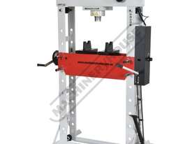 This 50 tonne press has a fully robotic welded frame for the highest quality, accuracy and provides extra rigidity; and is a step above the other standard versions that's found in today's market. The HPF-50 press is supplied with a pressure gauge & two heavy duty pressing plates, making it ideal for professional mechanics or industrial workshops.