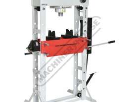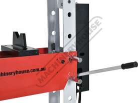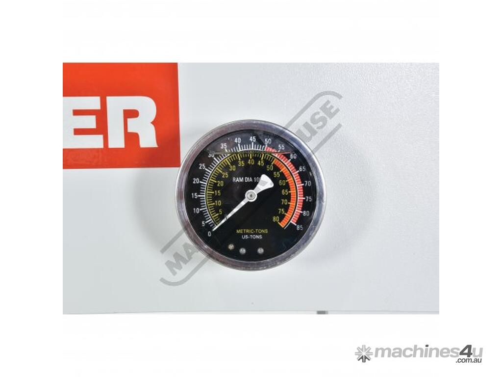 The Metalmaster HPF-50 50 tonne trade press is a versatile tool designed for a variety of applications, including the removal and installation of bushes, ball joints, bearings, gears, pulleys, and more. It features a convenient hand or foot-operated pump, allowing the operator to keep both hands on the workpiece while using the foot pump for ease of operation. Additionally, the hydraulic pump is equipped with an auto 2-stage hydraulic pump to be able to advance to the workpiece and then have a slower working speed for more control.