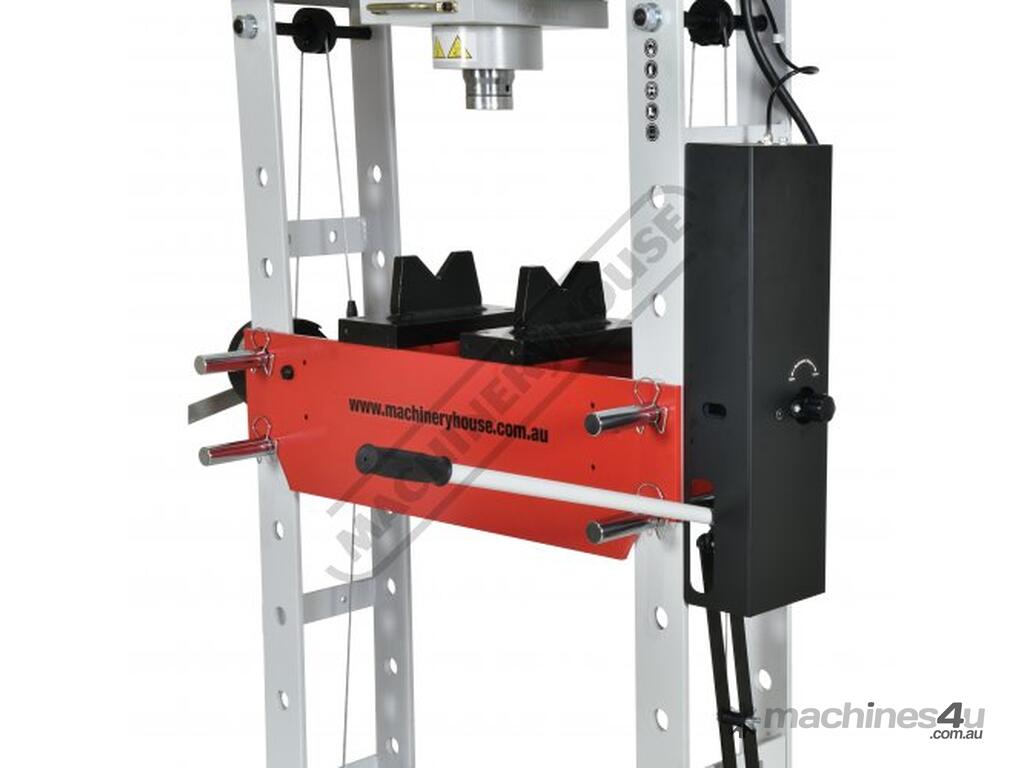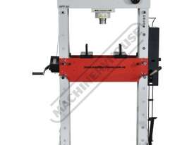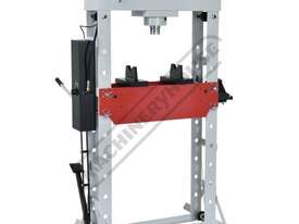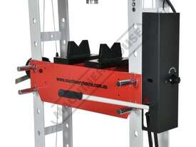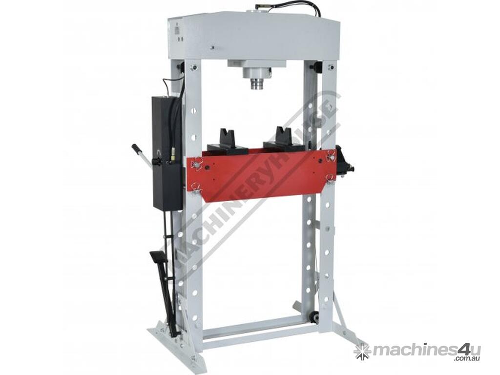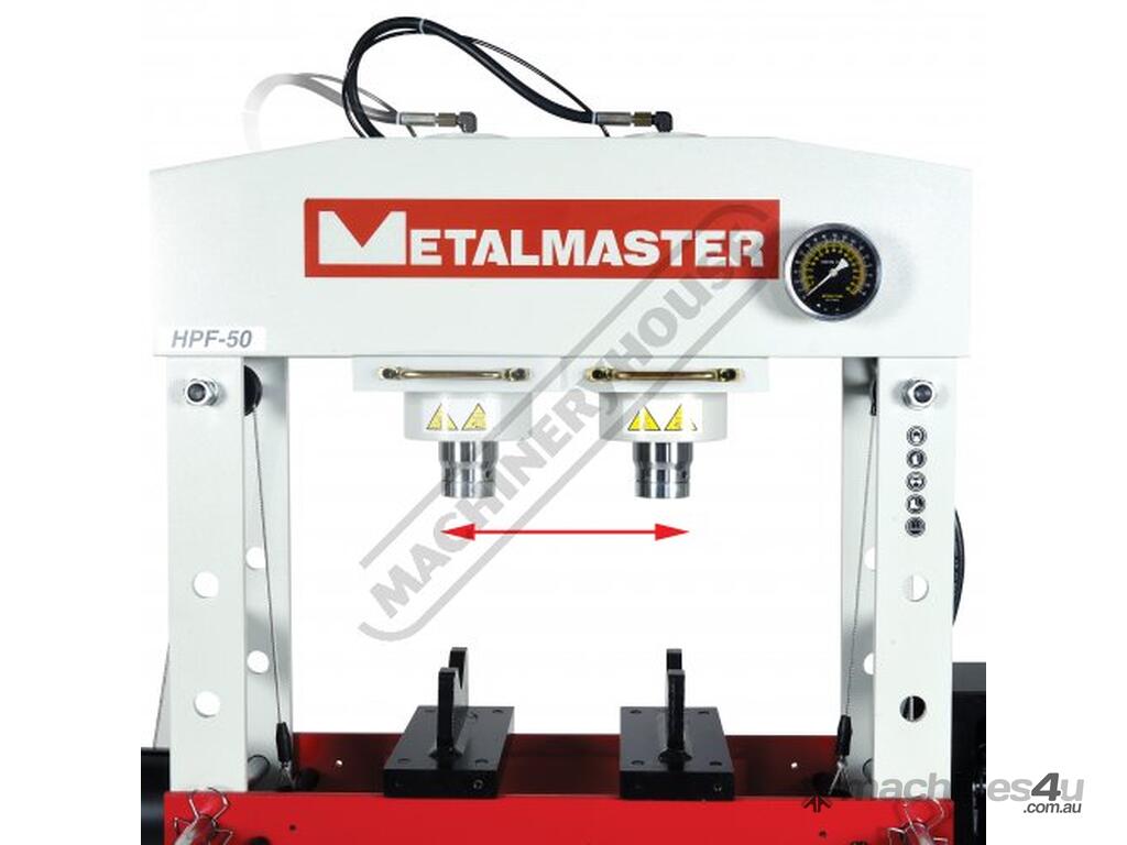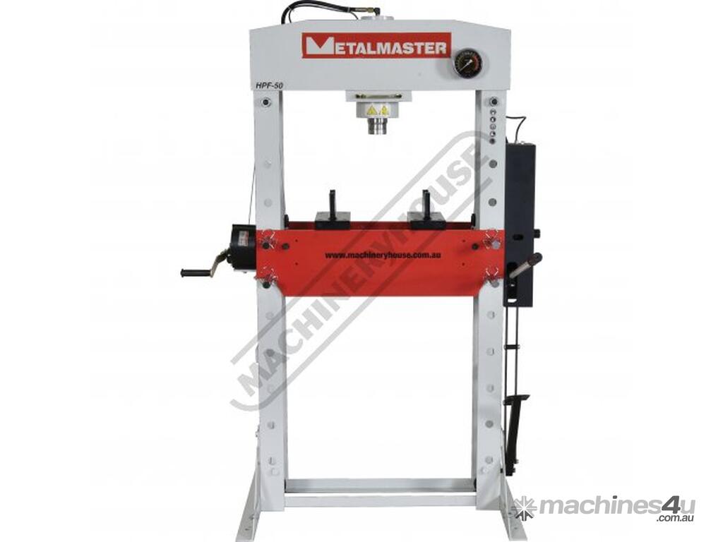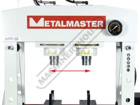 METALMASTER Industrial Hydraulic Press - 50 Tonne HPF-50 Robotic Welded Steel Frame Construction Includes Adjustable Sliding Cylinder Ram, Foot & Hand Operated Pump, Table Winch, Pressure Gauge & Bending Vee Blocks
