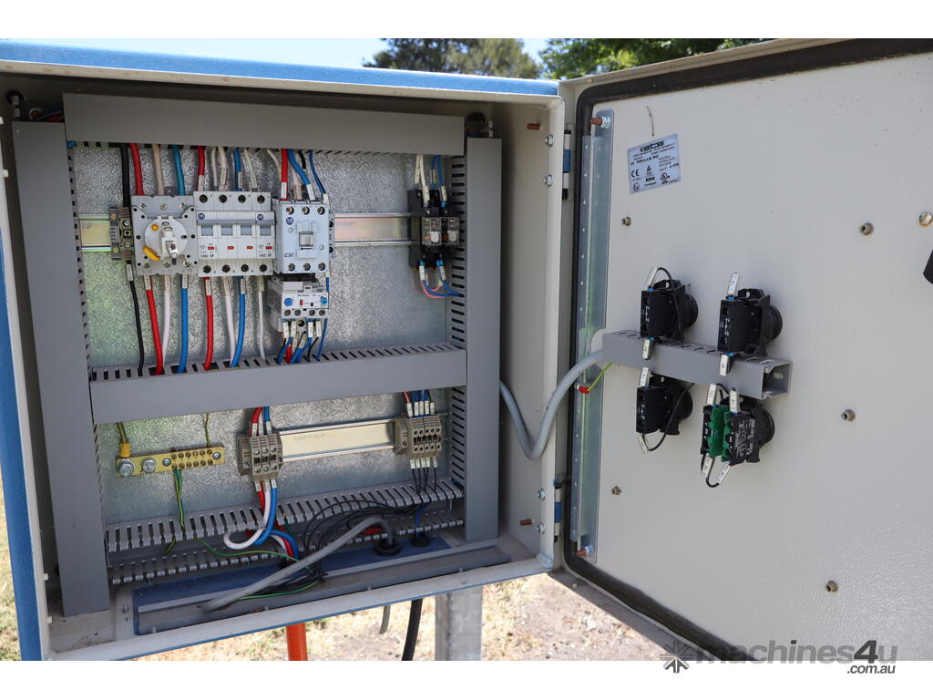 It is mounted on a solid galvanised steel skid with integrated forklift tine pockets.